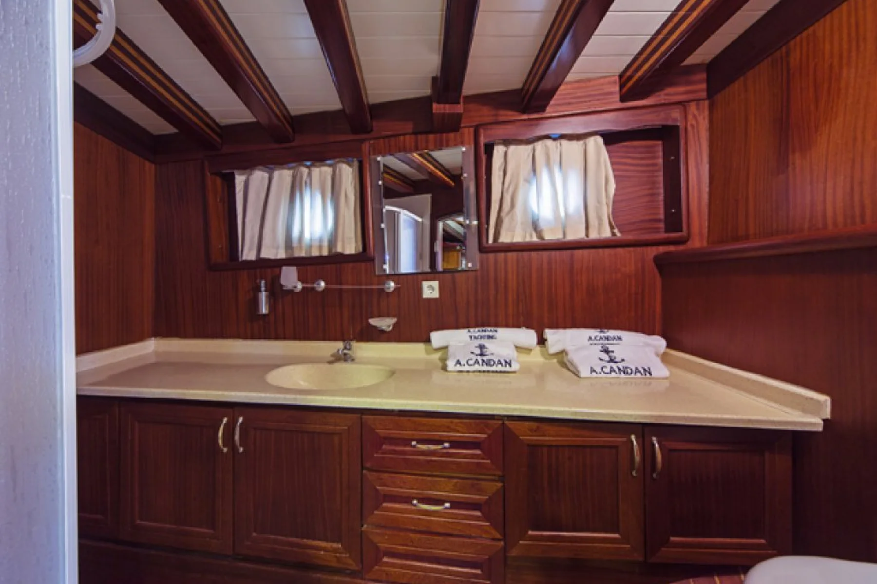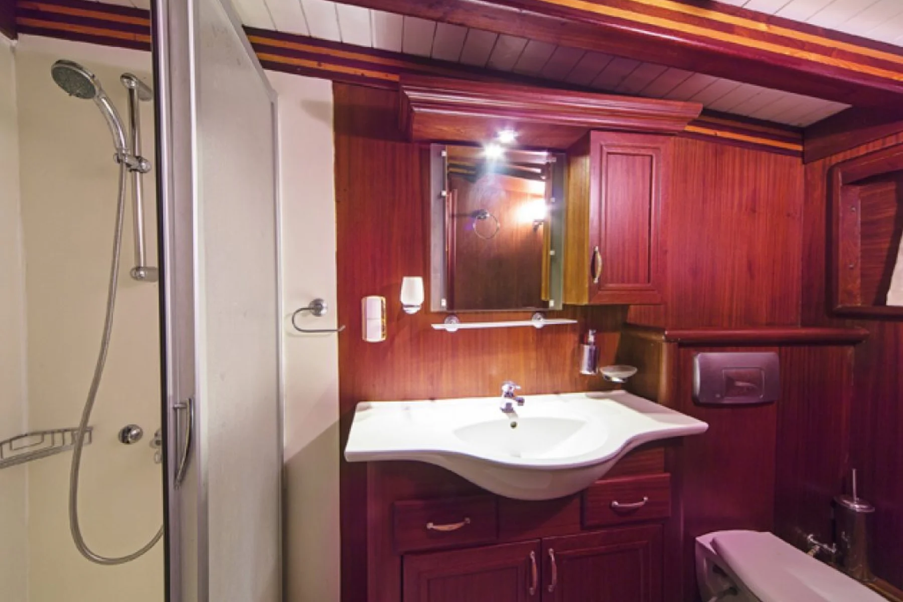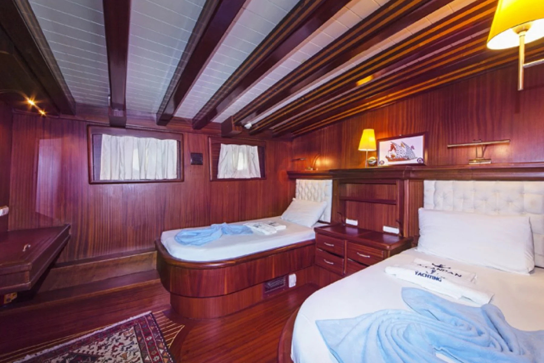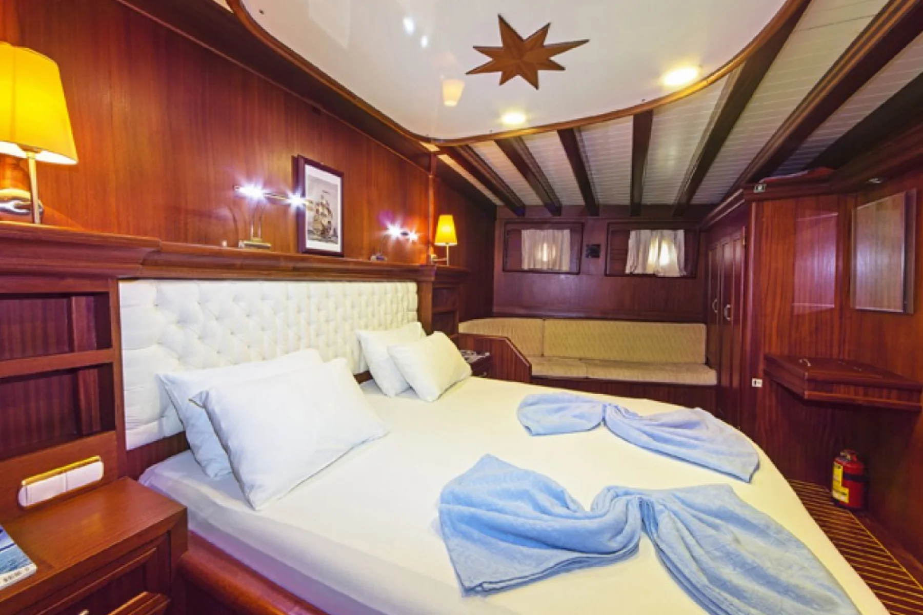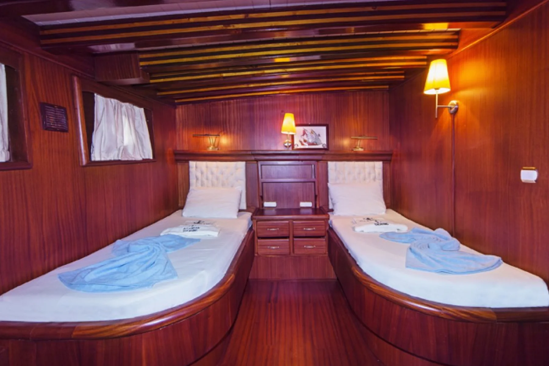 Yatımızın bütün kabinlerinde wc, duşa kabin, elbise dolabı, saç kurutma makinesi bulunmaktadır.
