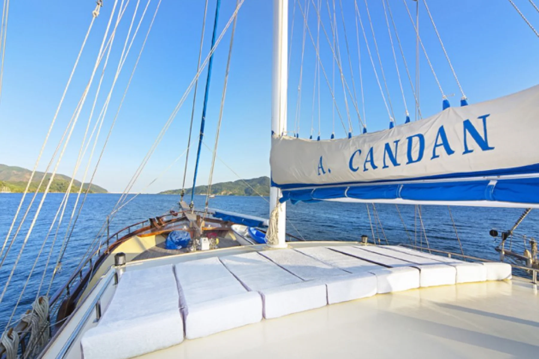 A Candan isimli 35 metre uzunluğundaki 8 kamaralı ahşap yatımız, 16 kişiye kadar misafir ağırlayabilmekte ve profesyonel personeli ile Akdeniz ve Ege denizinin eşsiz koylarında mavi yolculuk tatilleri için tercih edilen bir yatımızdır.