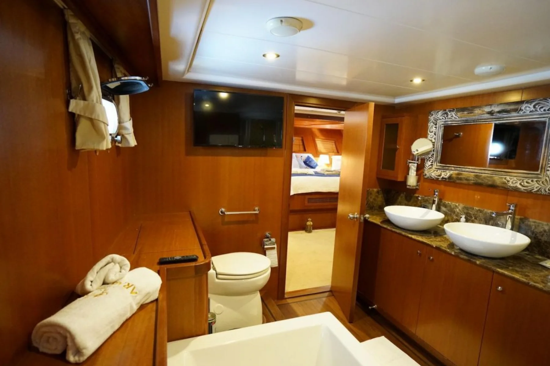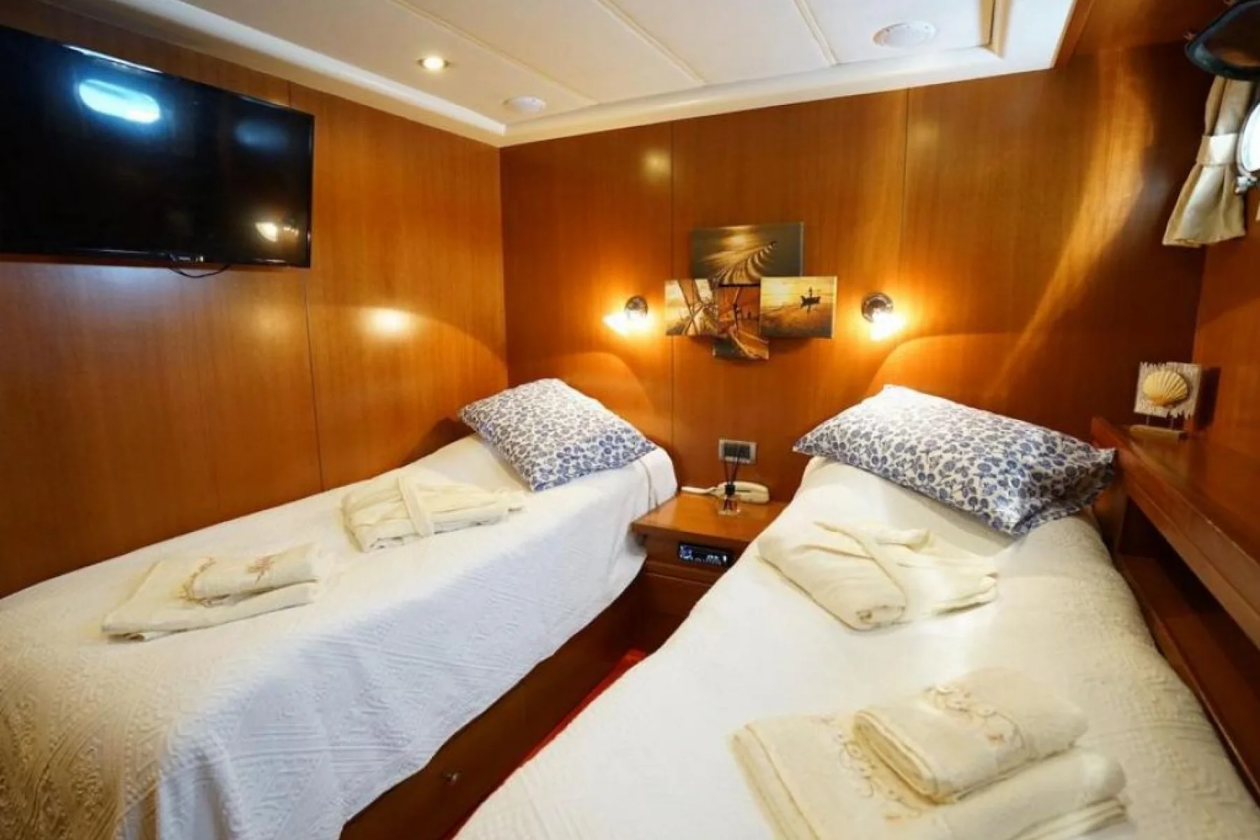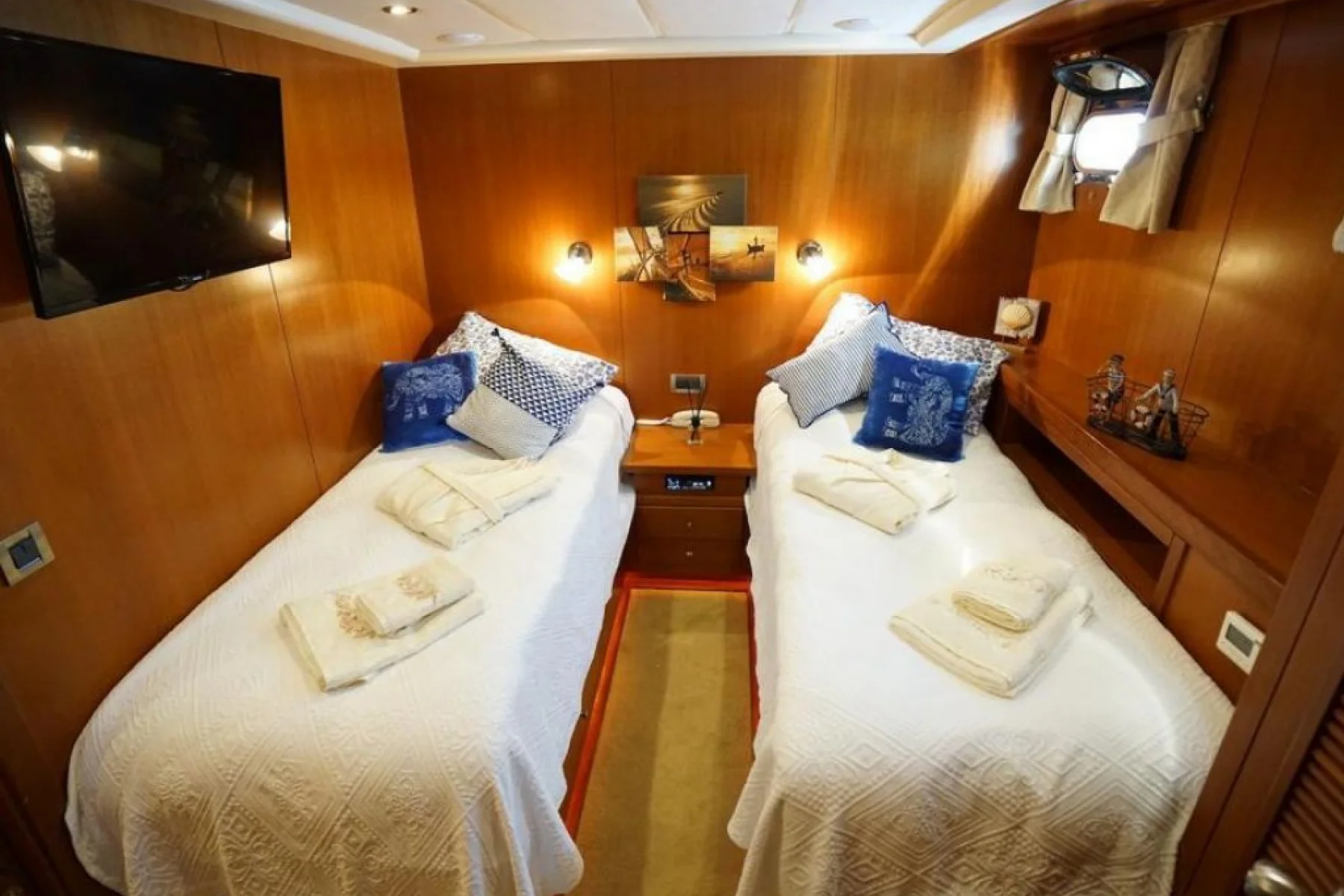 Yatımızın bütün kabinlerinde wc, duşa kabin, elbise dolabı, saç kurutma makinesi bulunmaktadır.