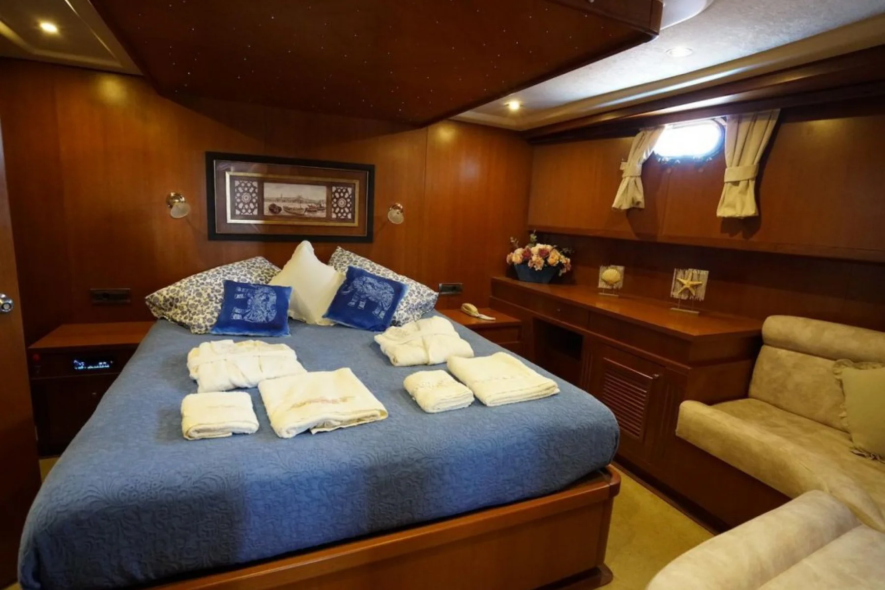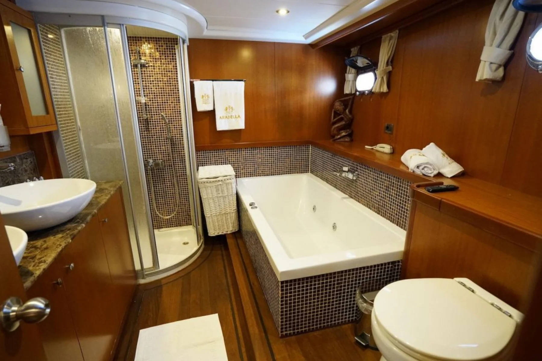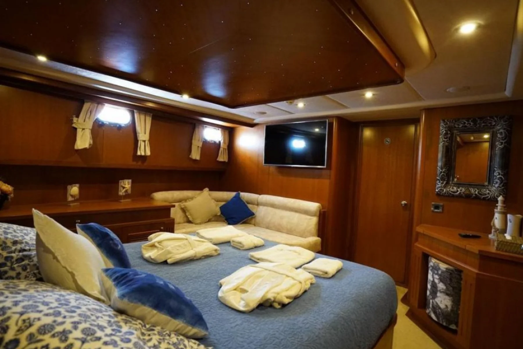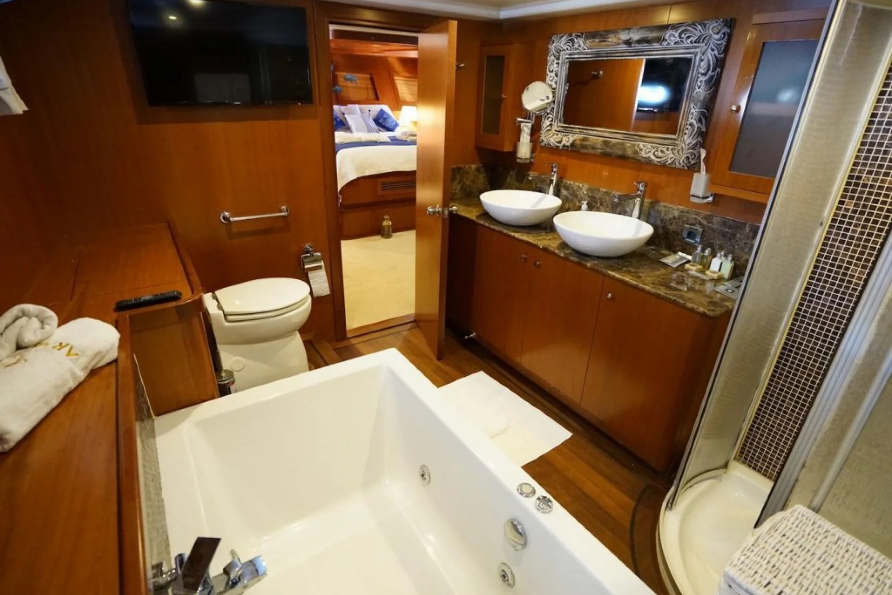 Yatımızın bütün kabinlerinde wc, duşa kabin, elbise dolabı, saç kurutma makinesi bulunmaktadır.