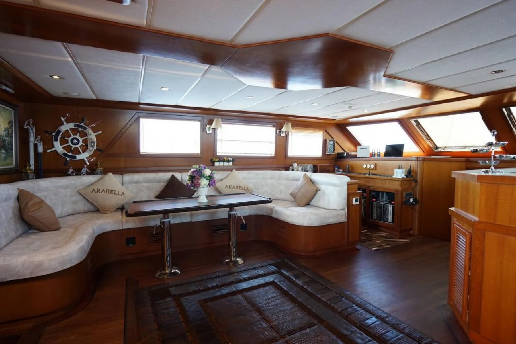 Arabella isimli 32 metre uzunluğundaki 4 kamaralı ahşap yatımız, 8 kişiye kadar misafir ağırlayabilmekte ve profesyonel personeli ile Akdeniz ve Ege denizinin eşsiz koylarında mavi yolculuk tatilleri için tercih edilen bir yatımızdır.