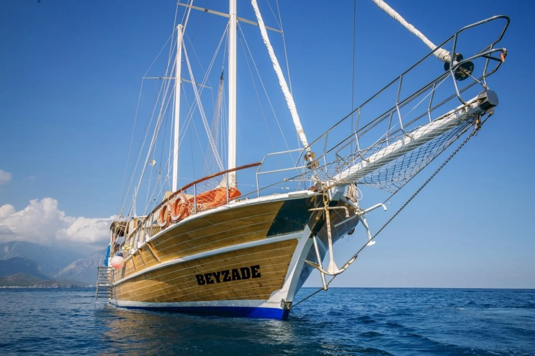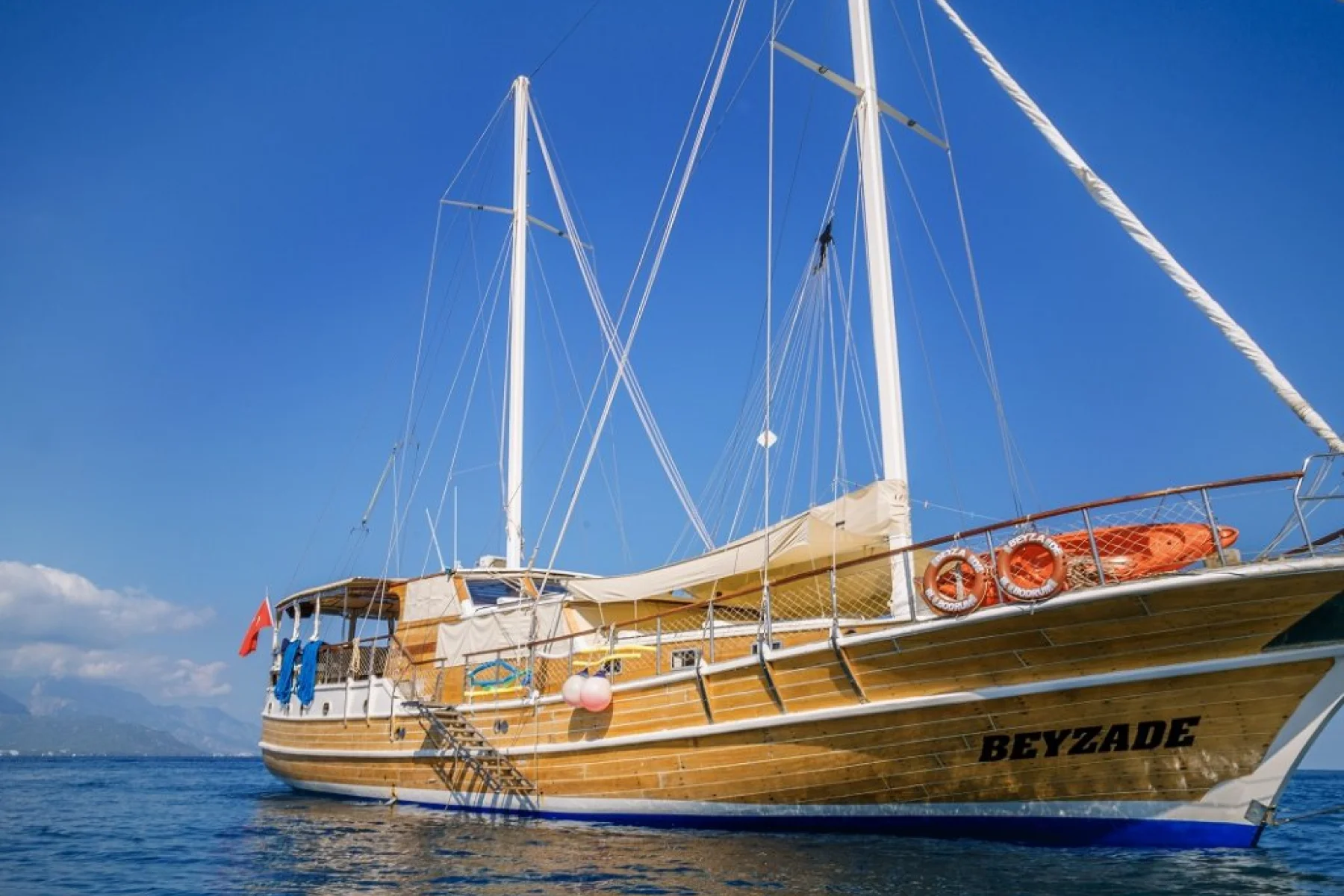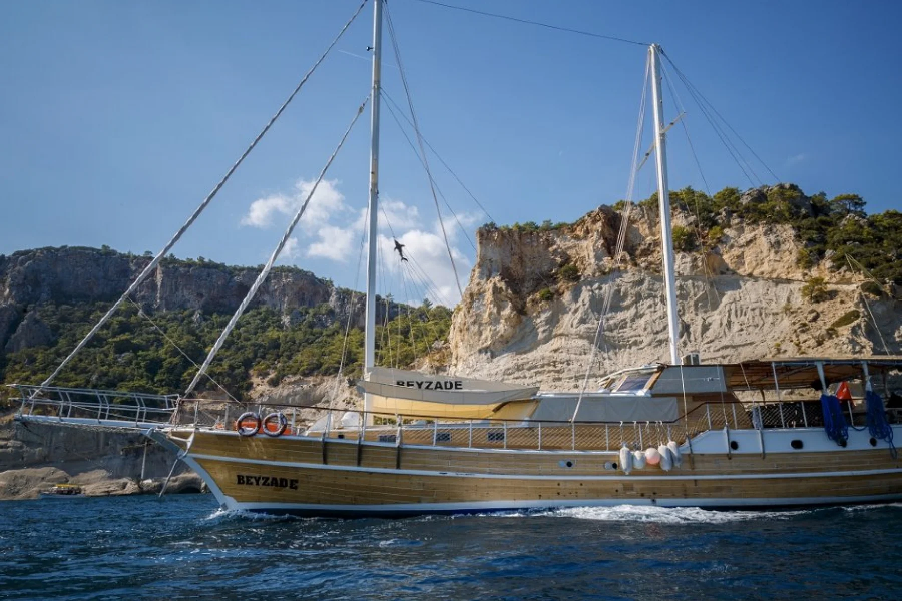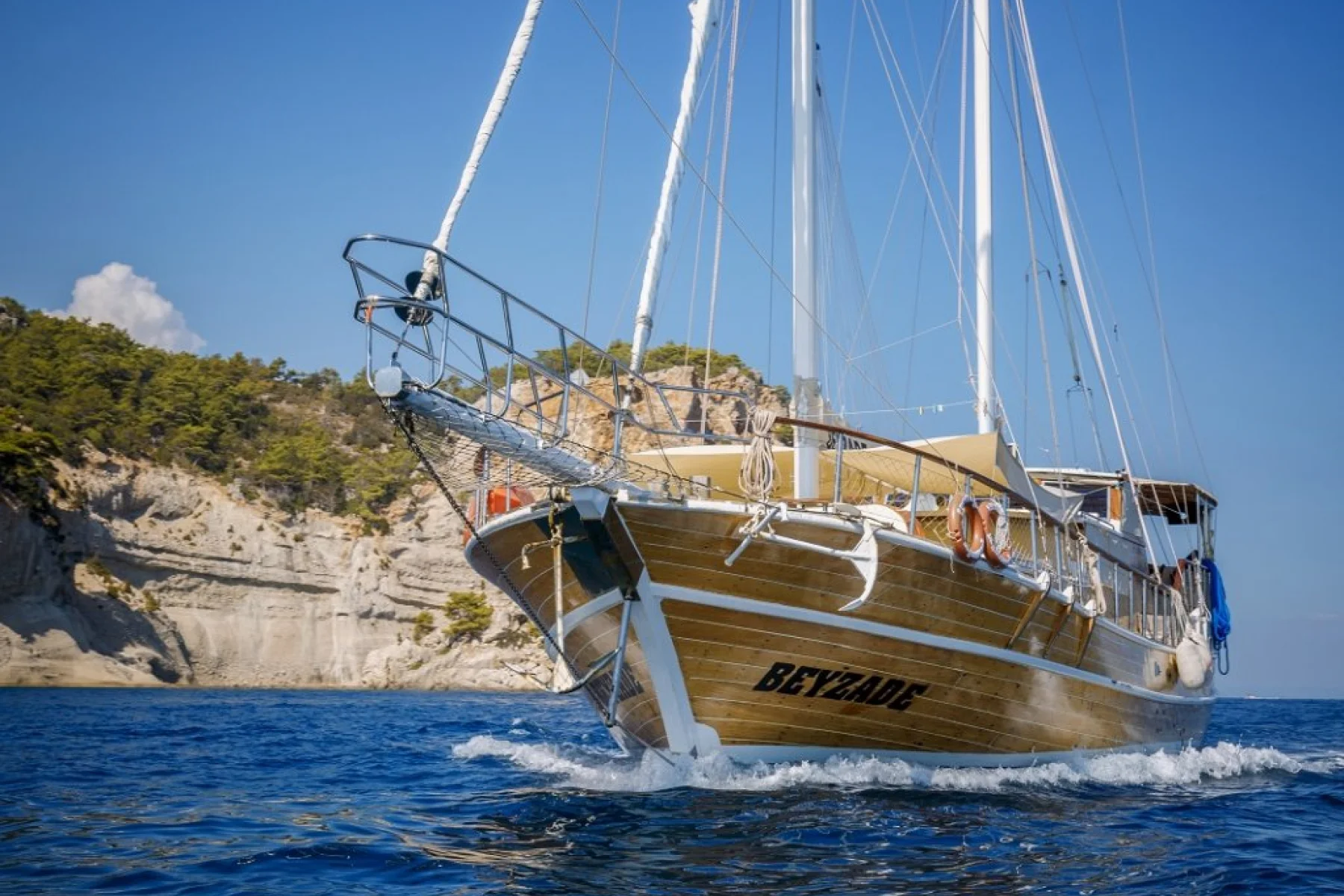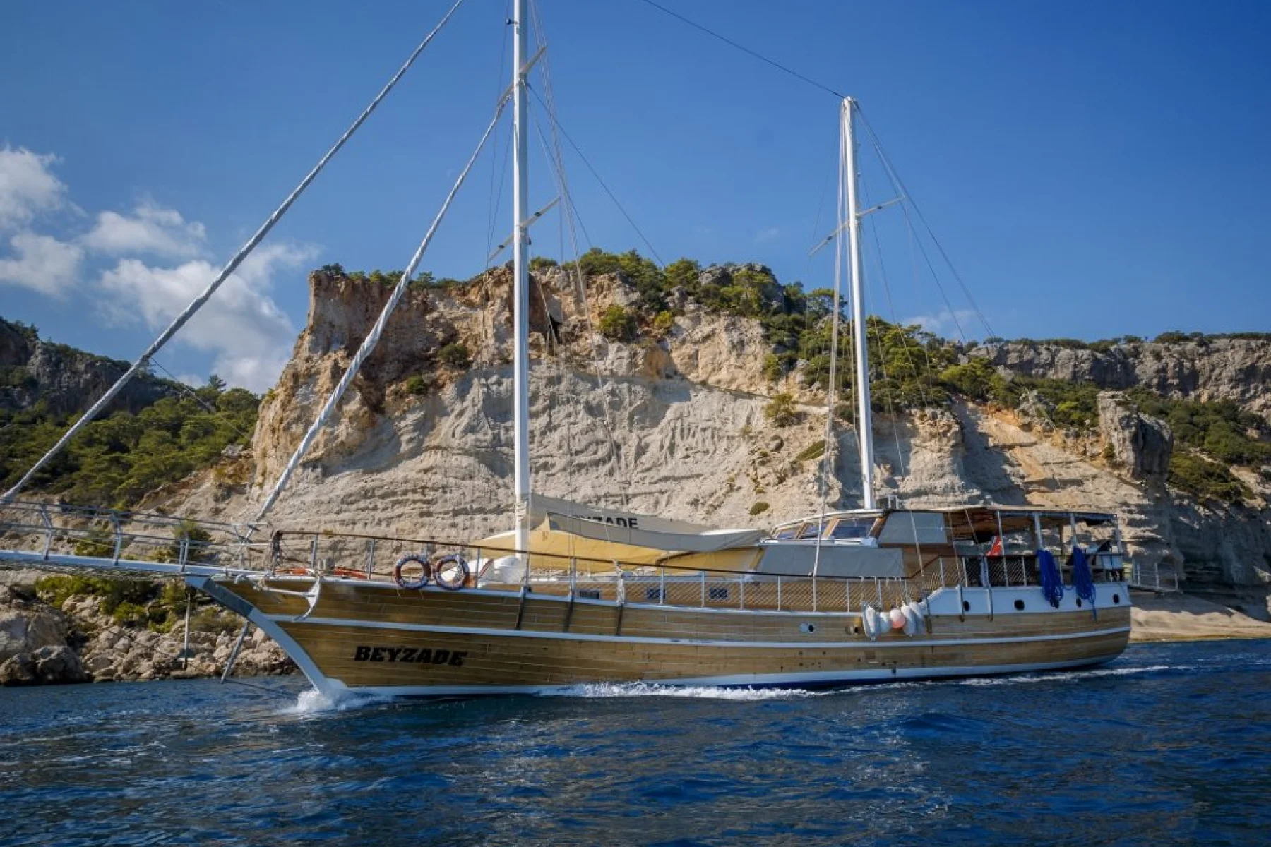 Beyzade isimli 26 metre uzunluğundaki 8 kamaralı ahşap yatımız, 16 kişiye kadar misafir ağırlayabilmekte ve profesyonel personeli ile Akdeniz ve Ege denizinin eşsiz koylarında mavi yolculuk tatilleri için tercih edilen bir yatımızdır.