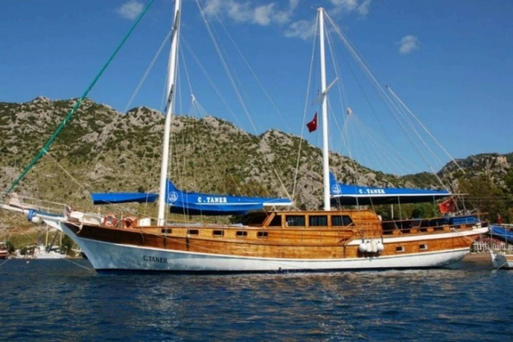 C Taner isimli 25 metre uzunluğundaki 8 kamaralı ahşap yatımız, 16 kişiye kadar misafir ağırlayabilmekte ve profesyonel personeli ile Akdeniz ve Ege denizinin eşsiz koylarında mavi yolculuk tatilleri için tercih edilen bir yatımızdır.