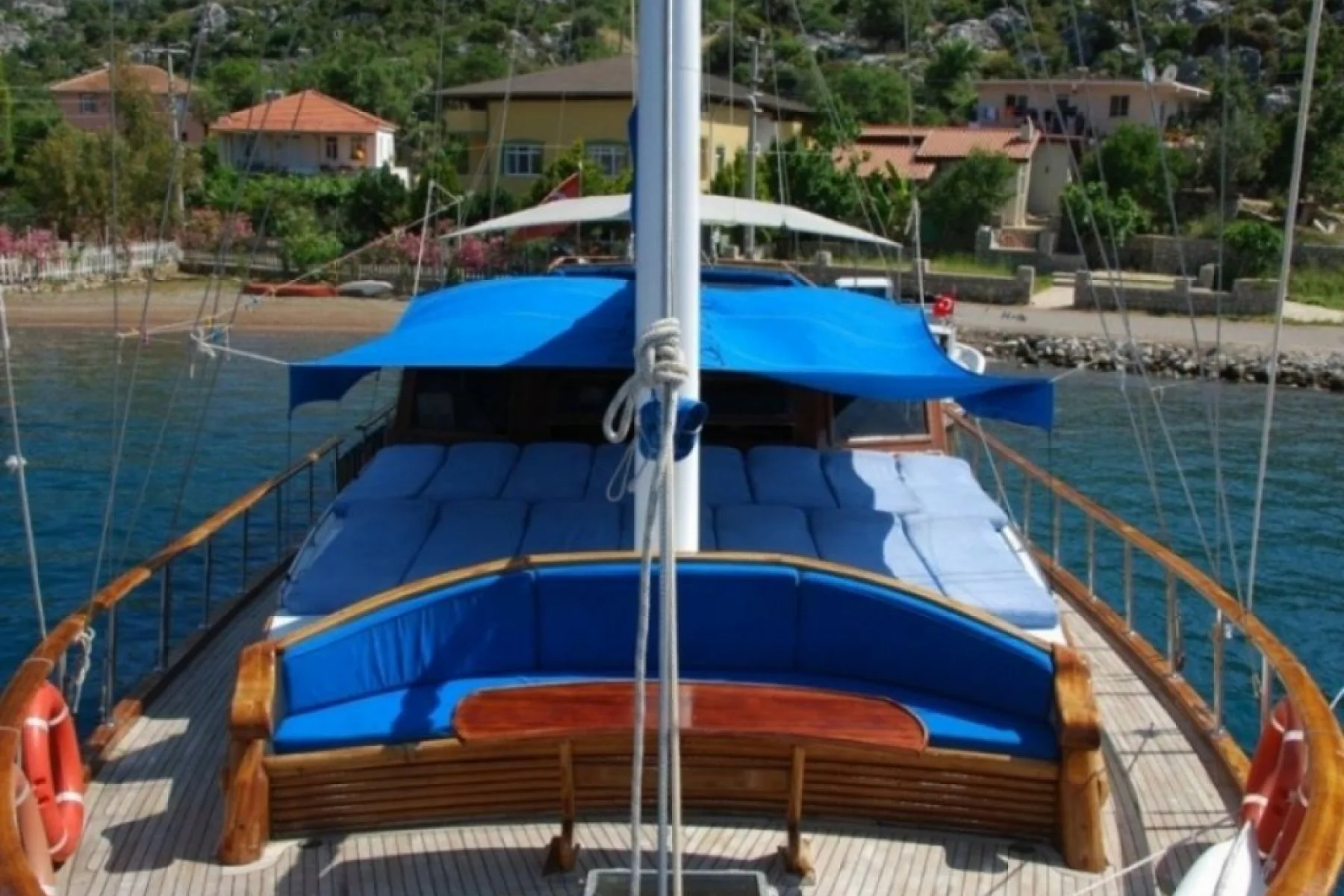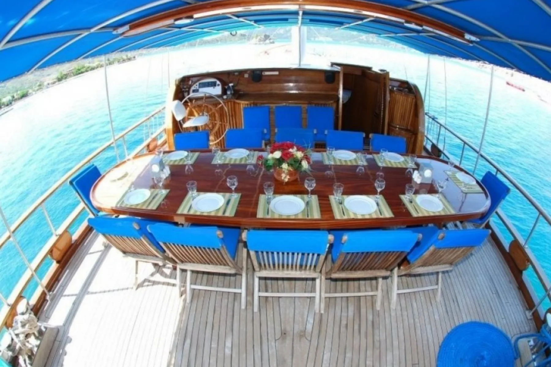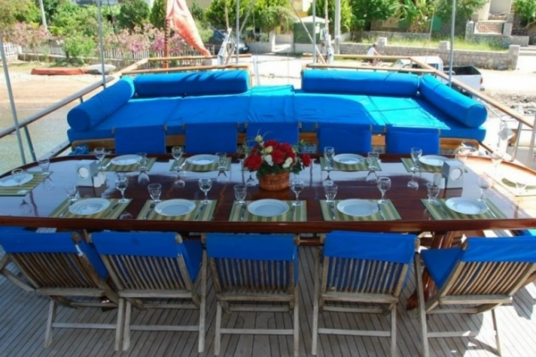 Tüm misafirlerimiz için ayrı ayrı güneşlenme minderleri, önde ve arkada özel minderli dinlenme alanları, sandalye, masa, servis takımları, güvenlik ekipmanları, gözlük ve palet mevcuttur.