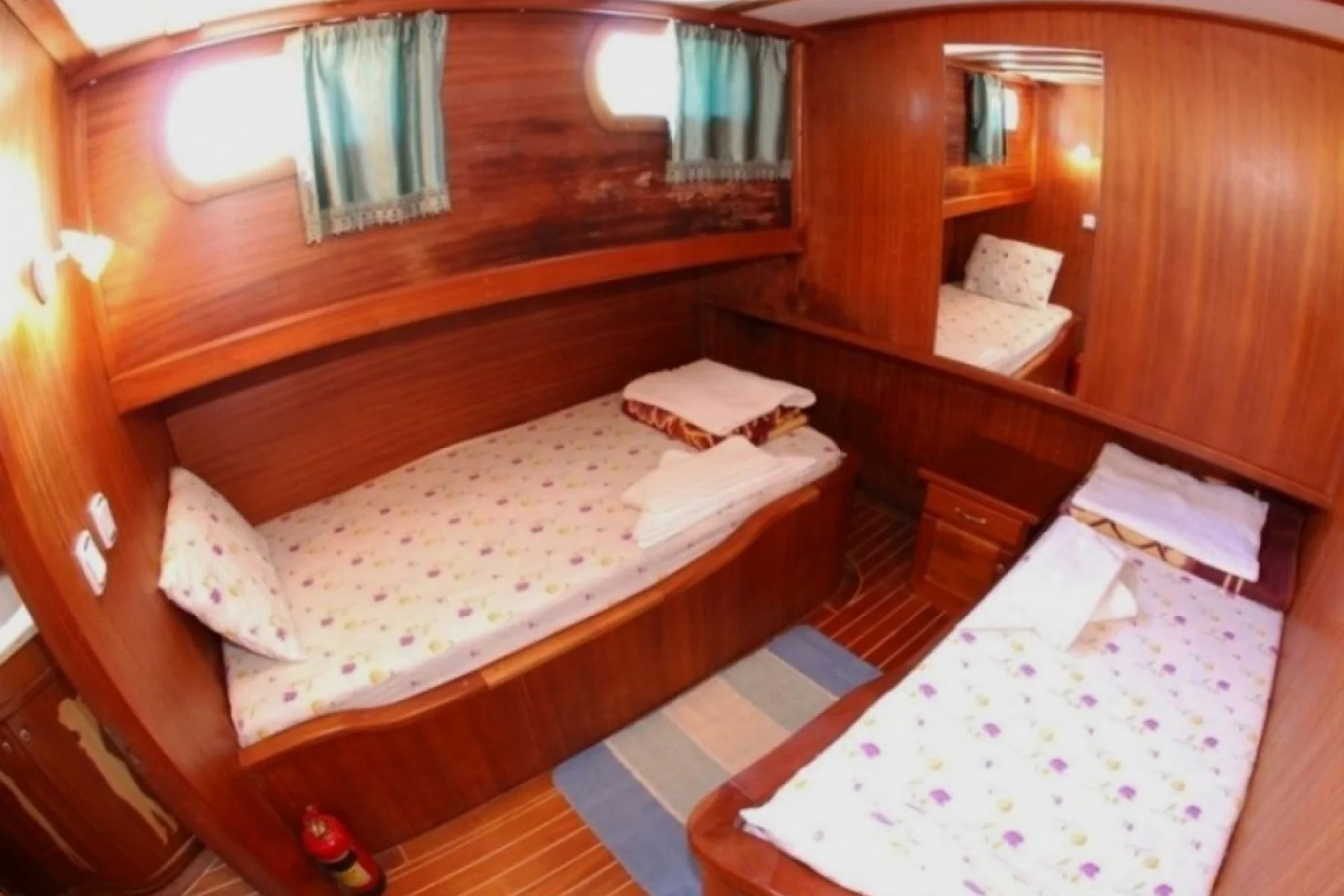 Yatımızın bütün kabinlerinde wc, duşa kabin, elbise dolabı, saç kurutma makinesi bulunmaktadır.