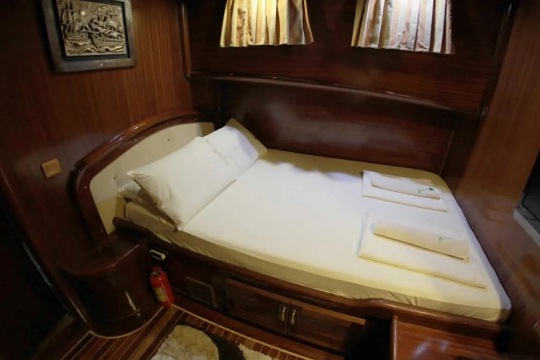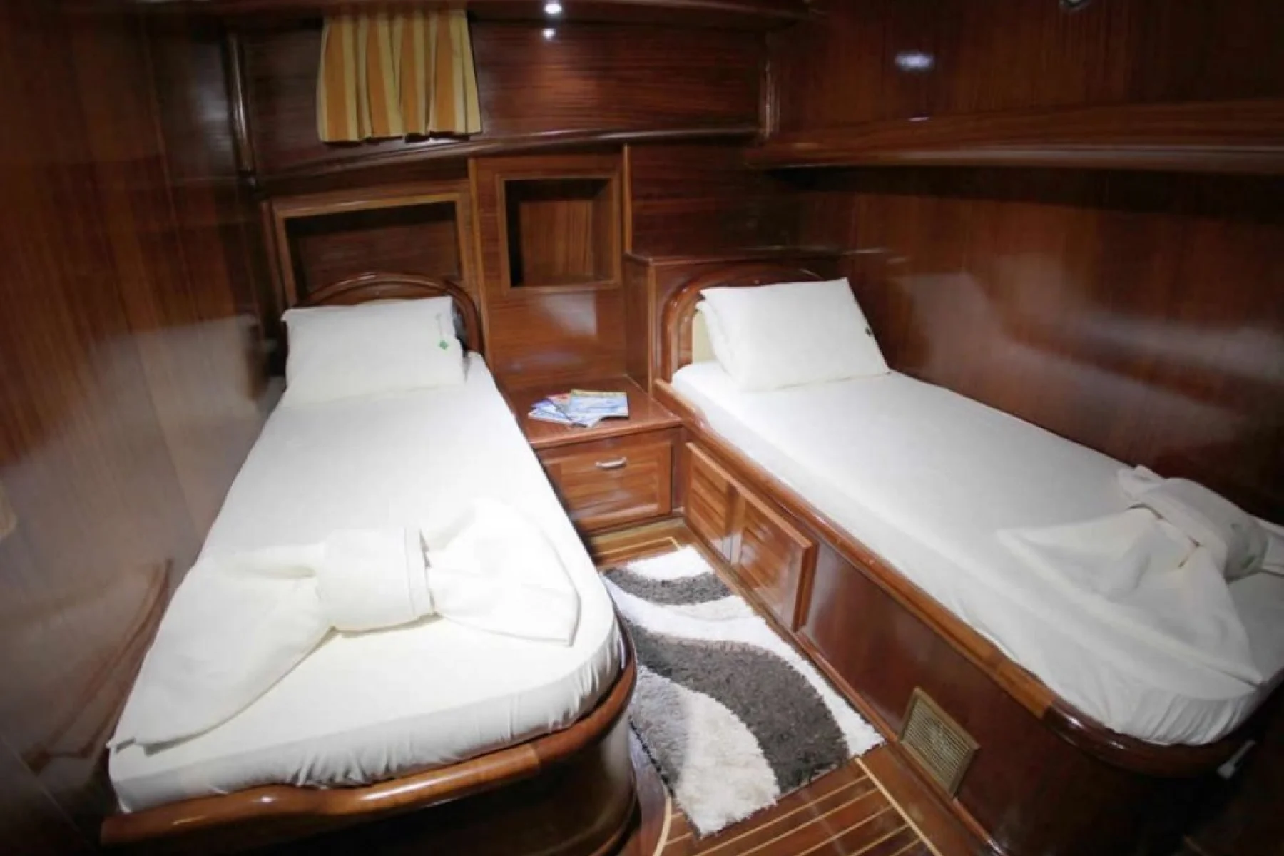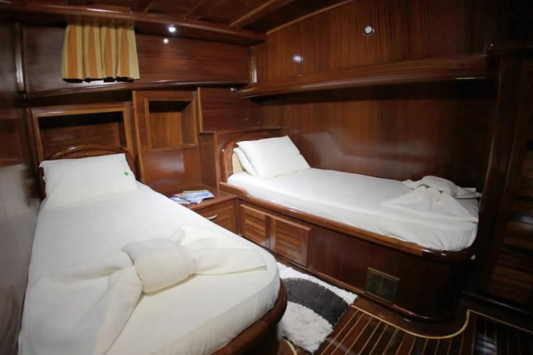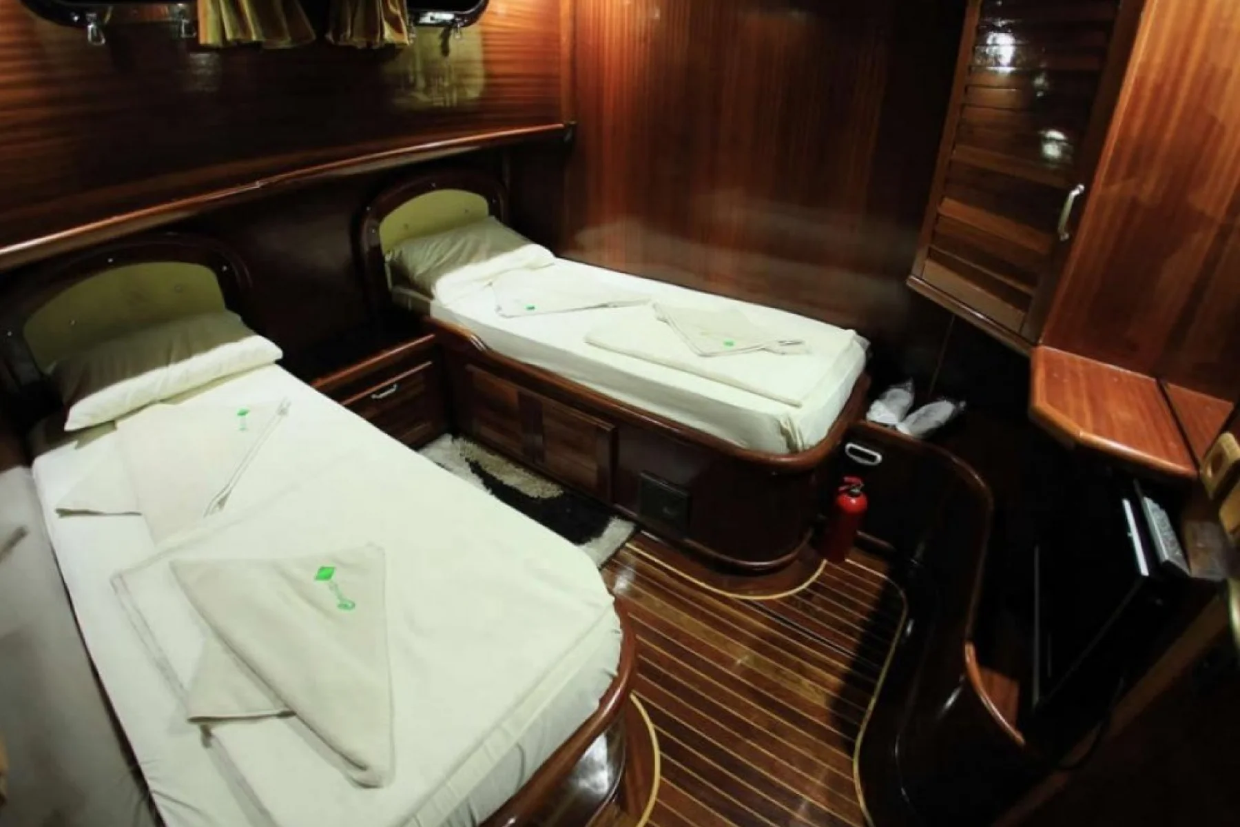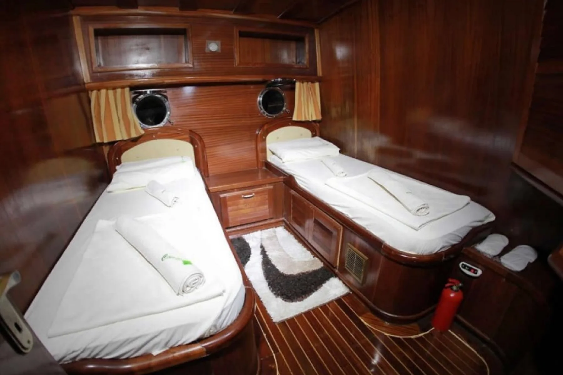 Yatımızın bütün kabinlerinde wc, duşa kabin, elbise dolabı, saç kurutma makinesi bulunmaktadır.