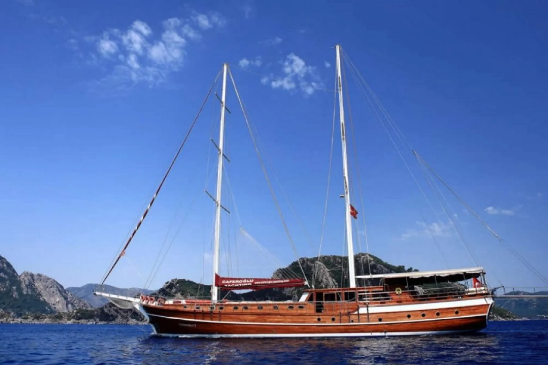Caferoğlu 7 isimli 39 metre uzunluğundaki 11 kamaralı ahşap guletimiz, 22 kişiye kadar misafir ağırlayabilmekte ve profesyonel personeli ile Akdeniz ve Ege denizinin eşsiz koylarında mavi yolculuk tatilleri için tercih edilen bir yatımızdır.