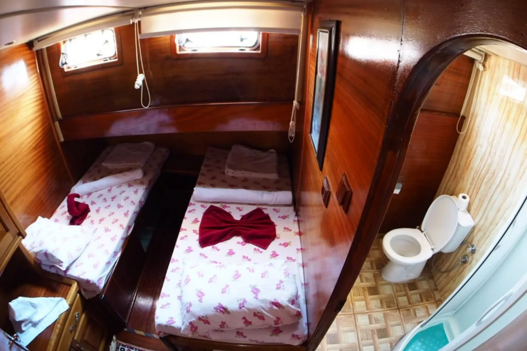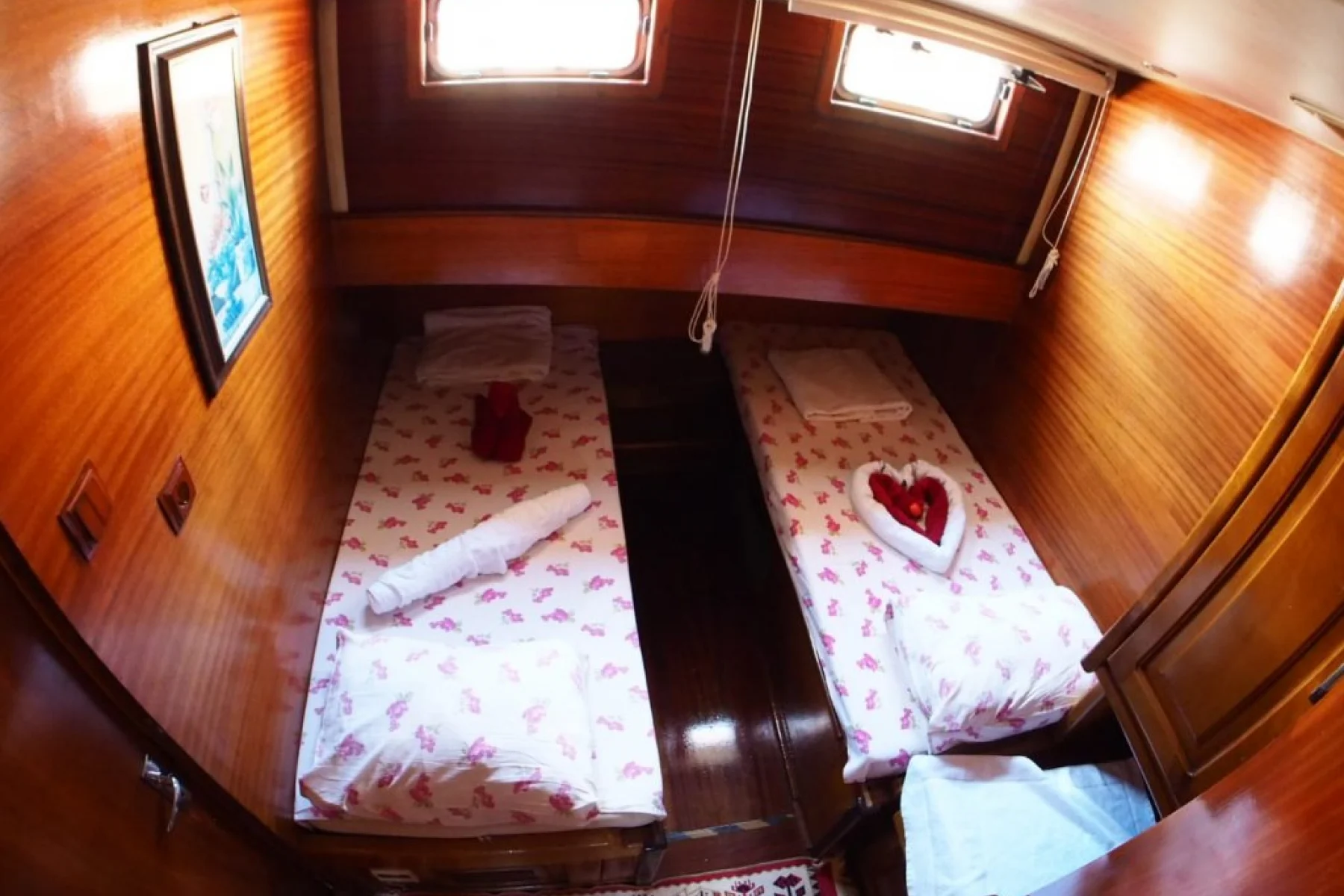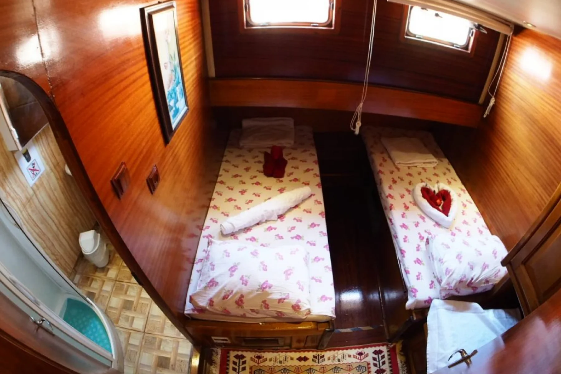 Yatımızın bütün kabinlerinde wc, duşa kabin, elbise dolabı, saç kurutma makinesi bulunmaktadır.