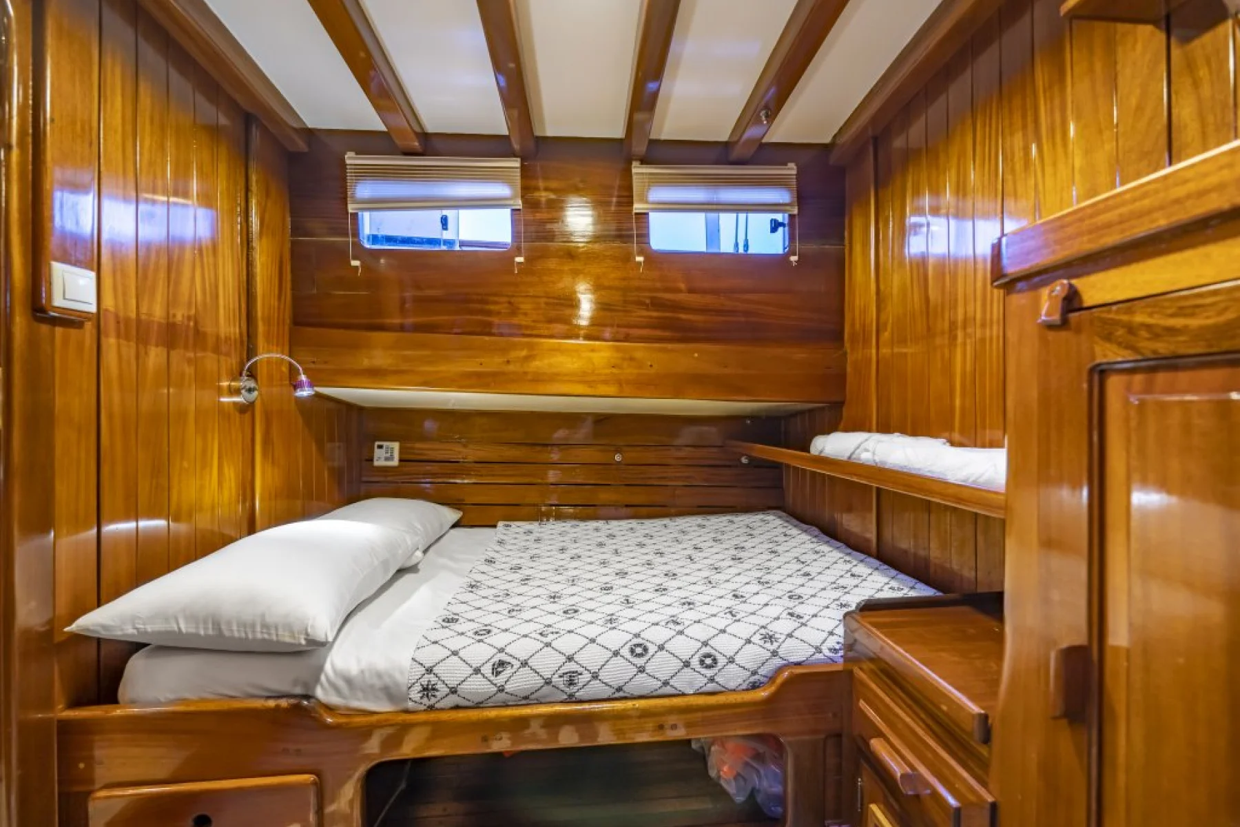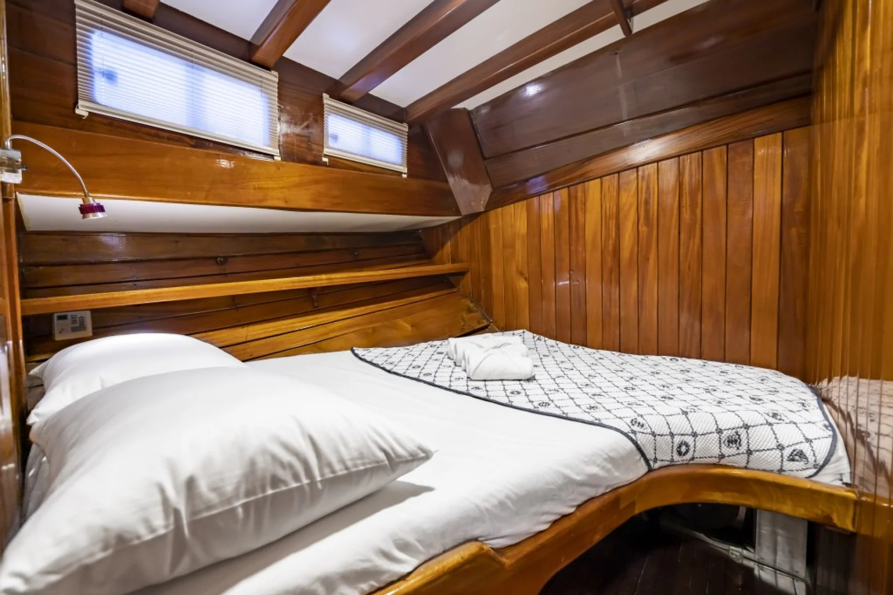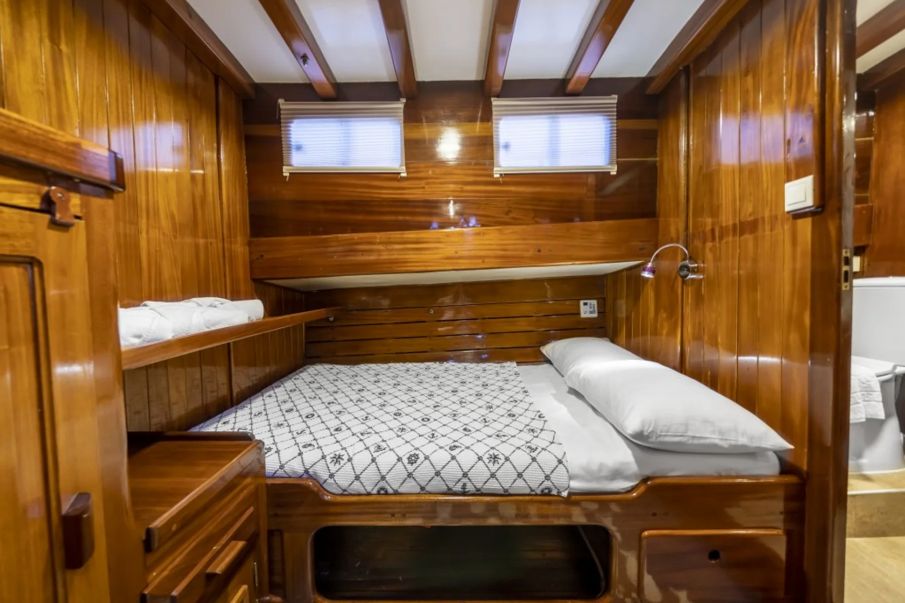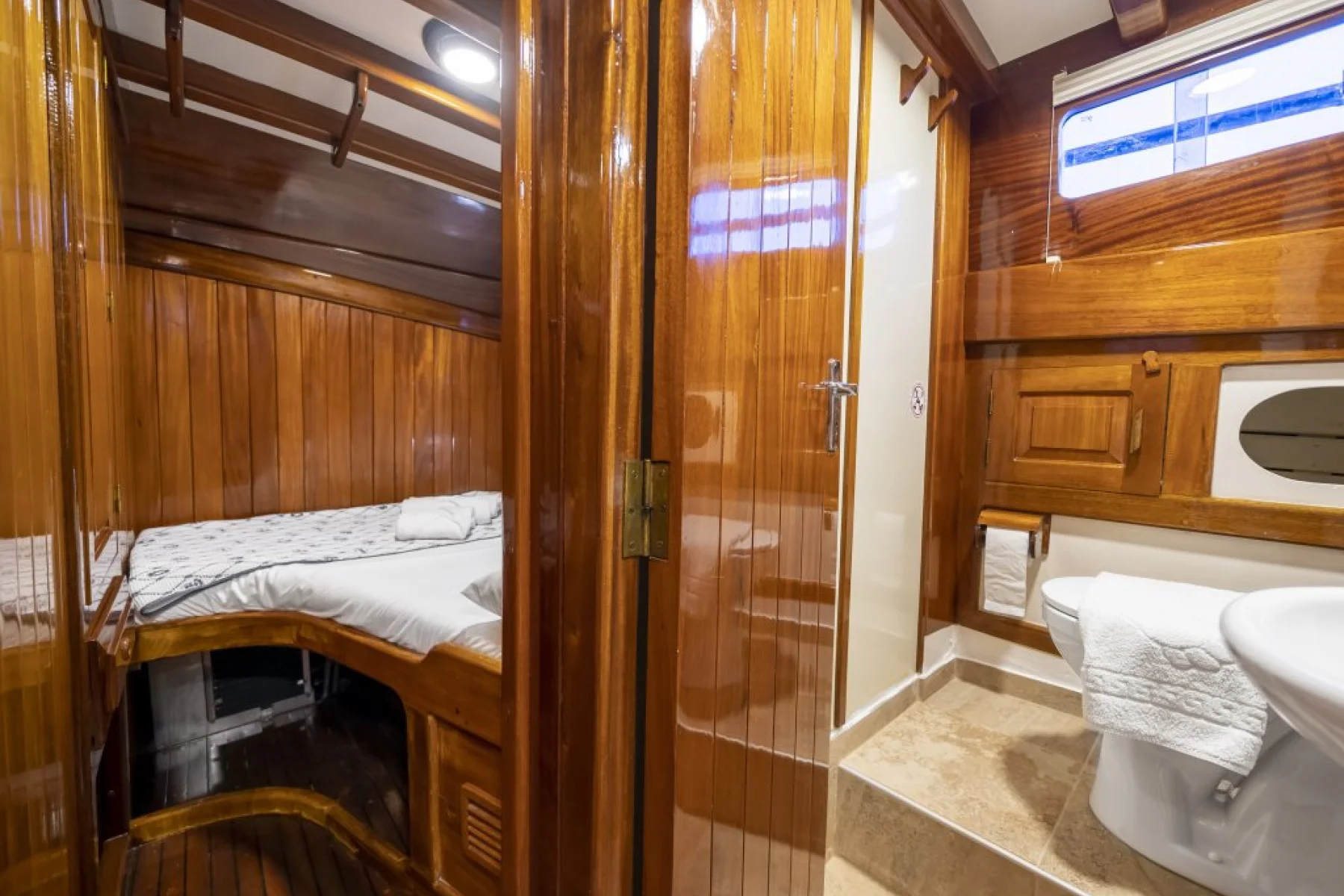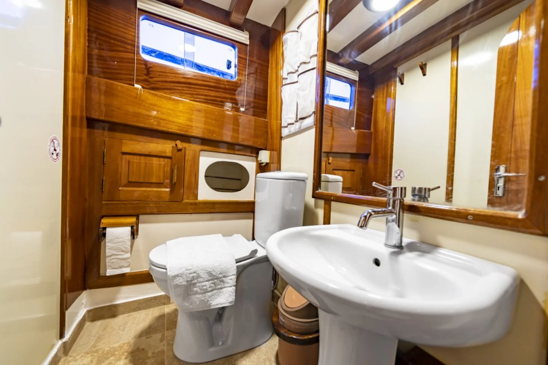 Yatımızın bütün kabinlerinde wc, duşa kabin, elbise dolabı, saç kurutma makinesi bulunmaktadır.