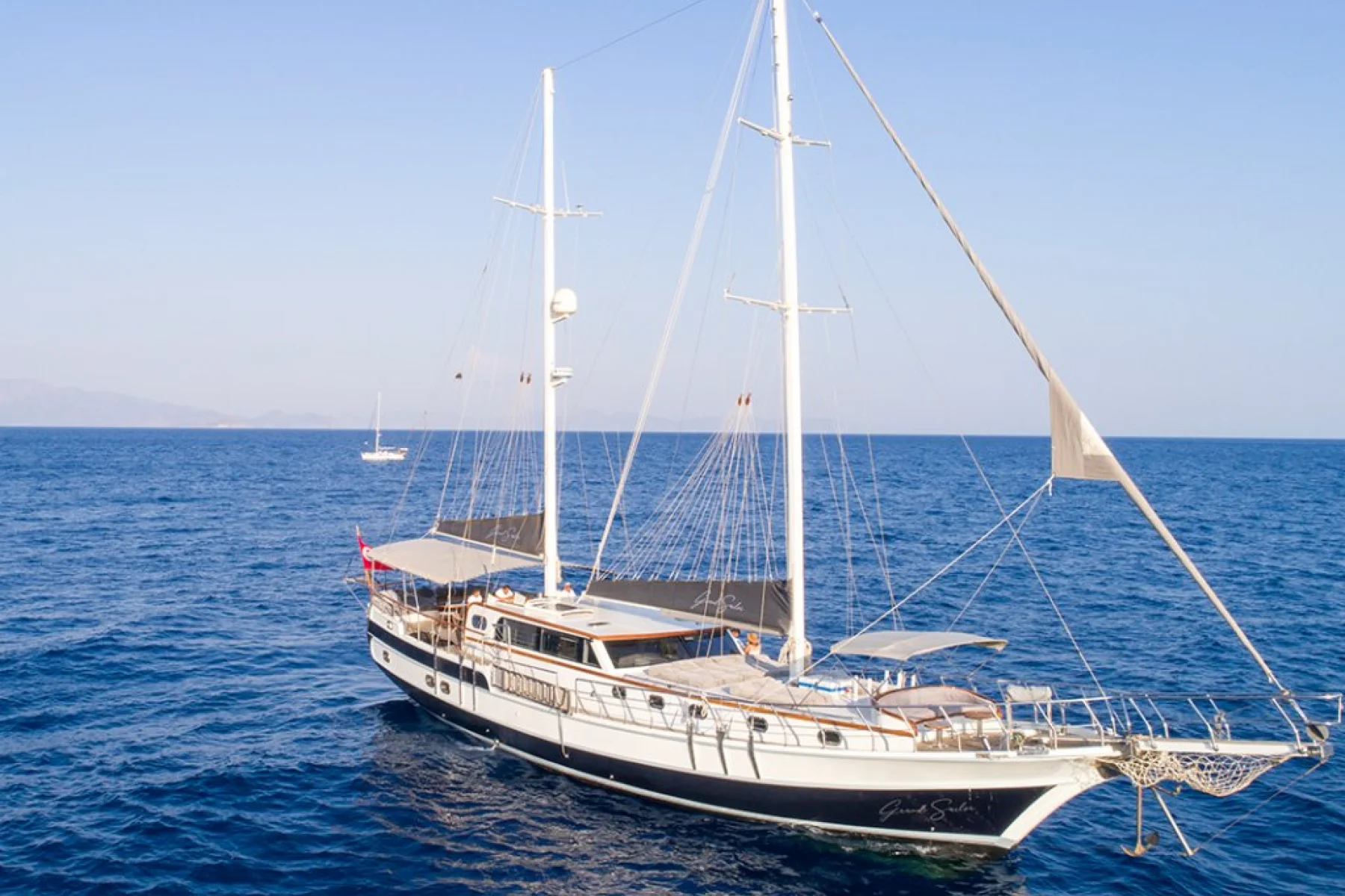 Grand Sailor isimli 24 metre uzunluğundaki 4 kamaralı ahşap yatımız, 8 kişiye kadar misafir ağırlayabilmekte ve profesyonel personeli ile Akdeniz ve Ege denizinin eşsiz koylarında mavi yolculuk tatilleri için tercih edilen bir yatımızdır.