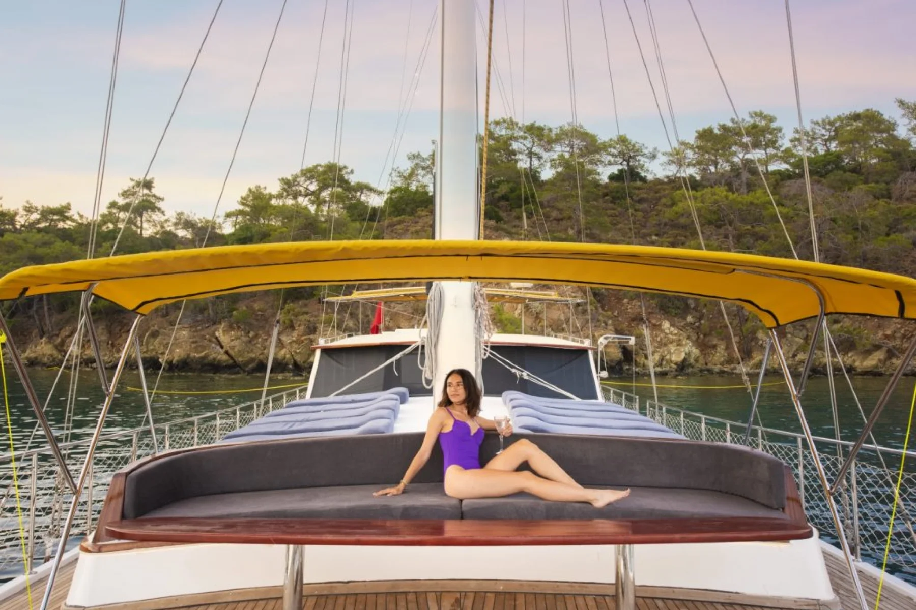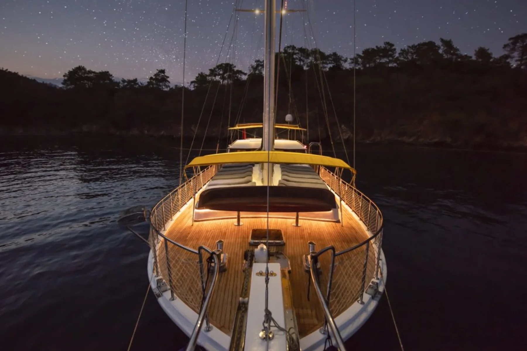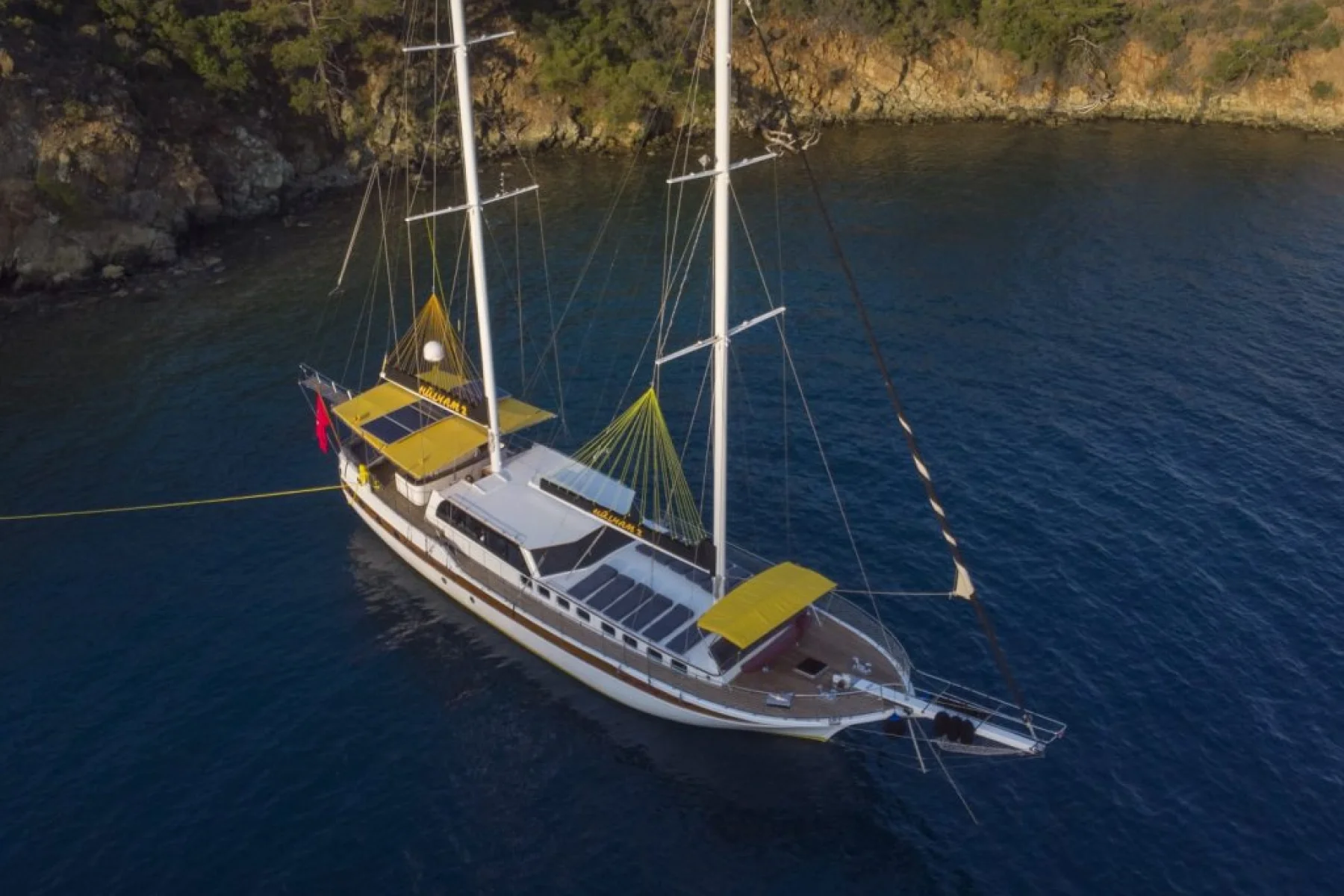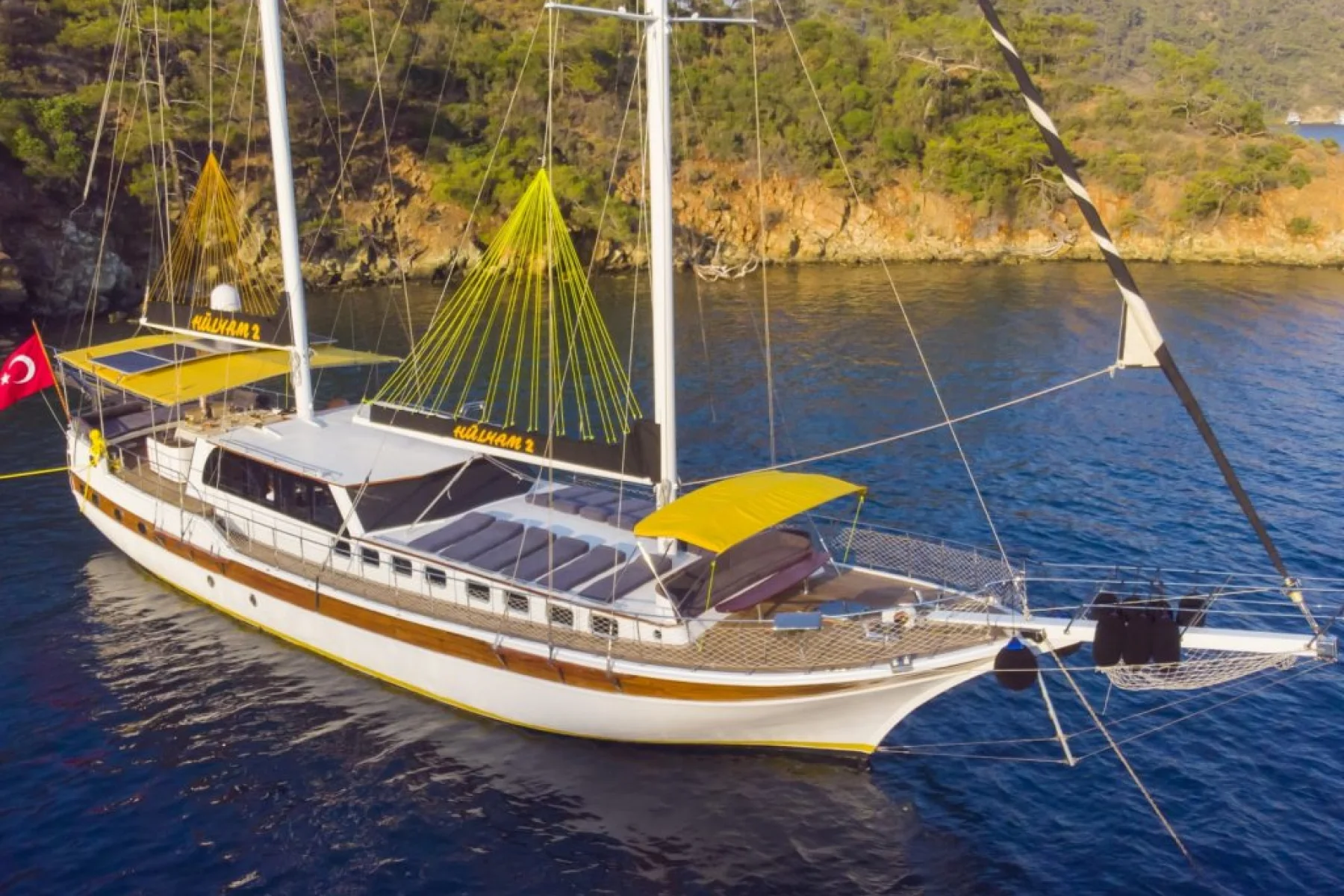 Hülyam 2 isimli 24 metre uzunluğundaki 5 kamaralı ahşap yatımız, 10 kişiye kadar misafir ağırlayabilmekte ve profesyonel personeli ile Akdeniz ve Ege denizinin eşsiz koylarında mavi yolculuk tatilleri için tercih edilen bir yatımızdır.