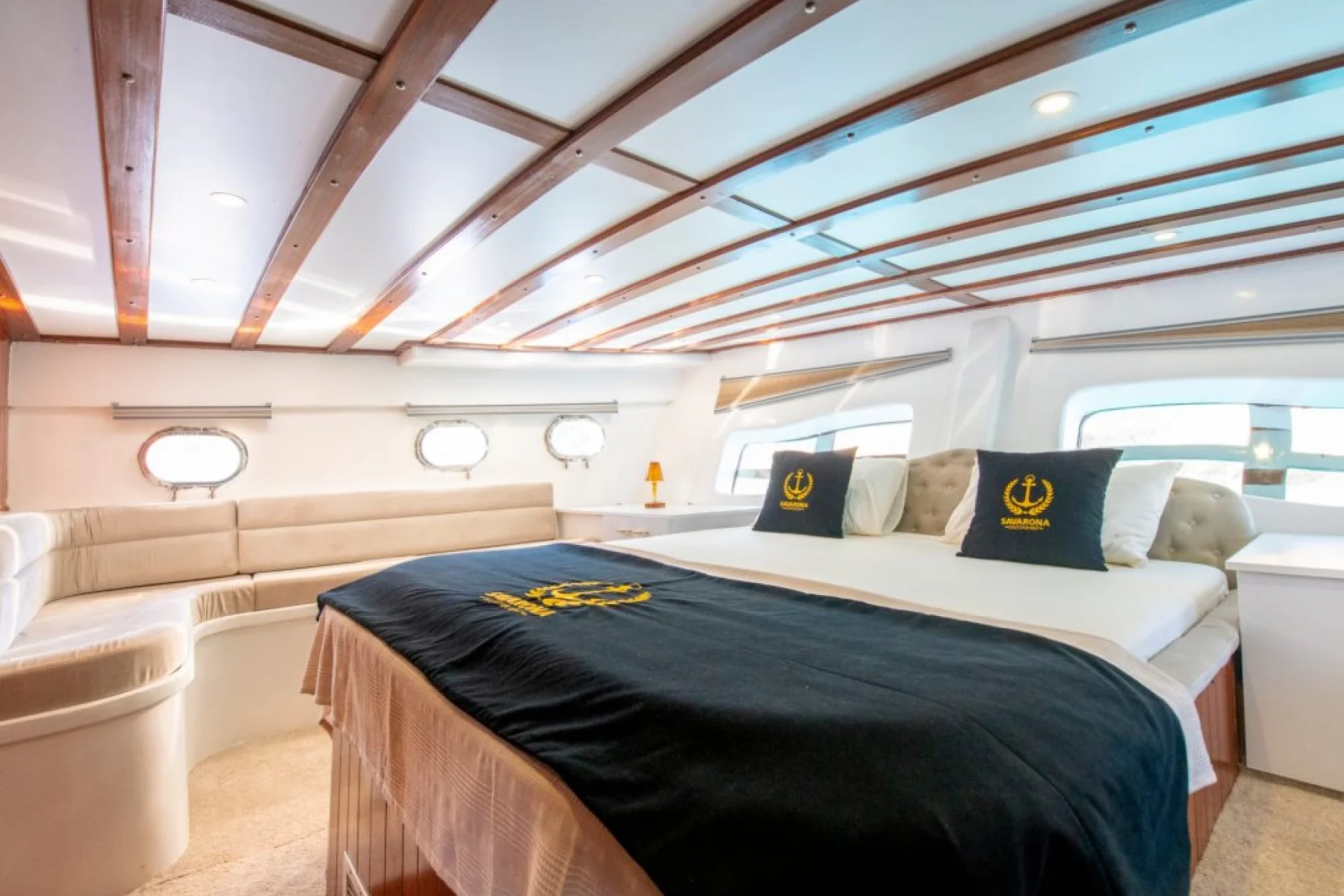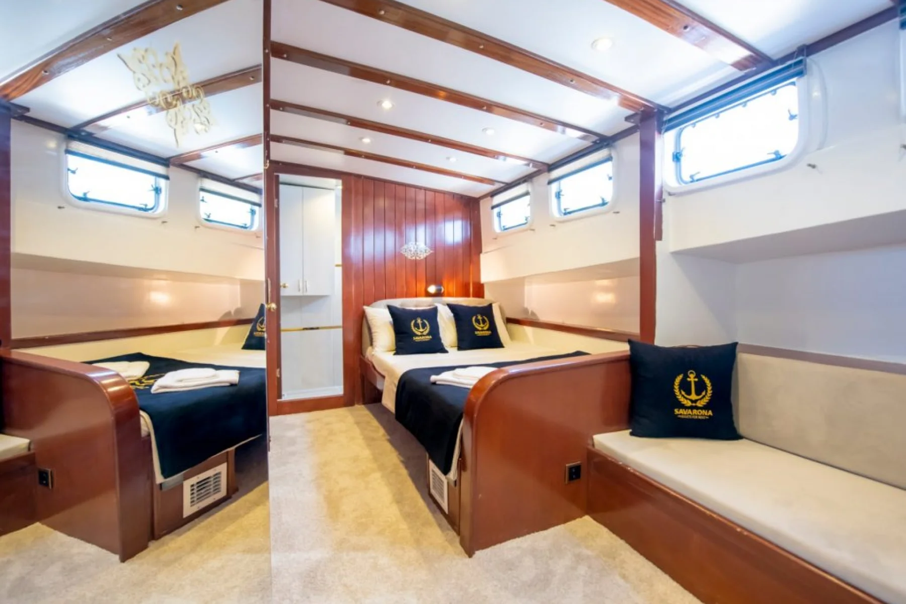 Yatımızın bütün kabinlerinde wc, duşa kabin, elbise dolabı, saç kurutma makinesi bulunmaktadır.
