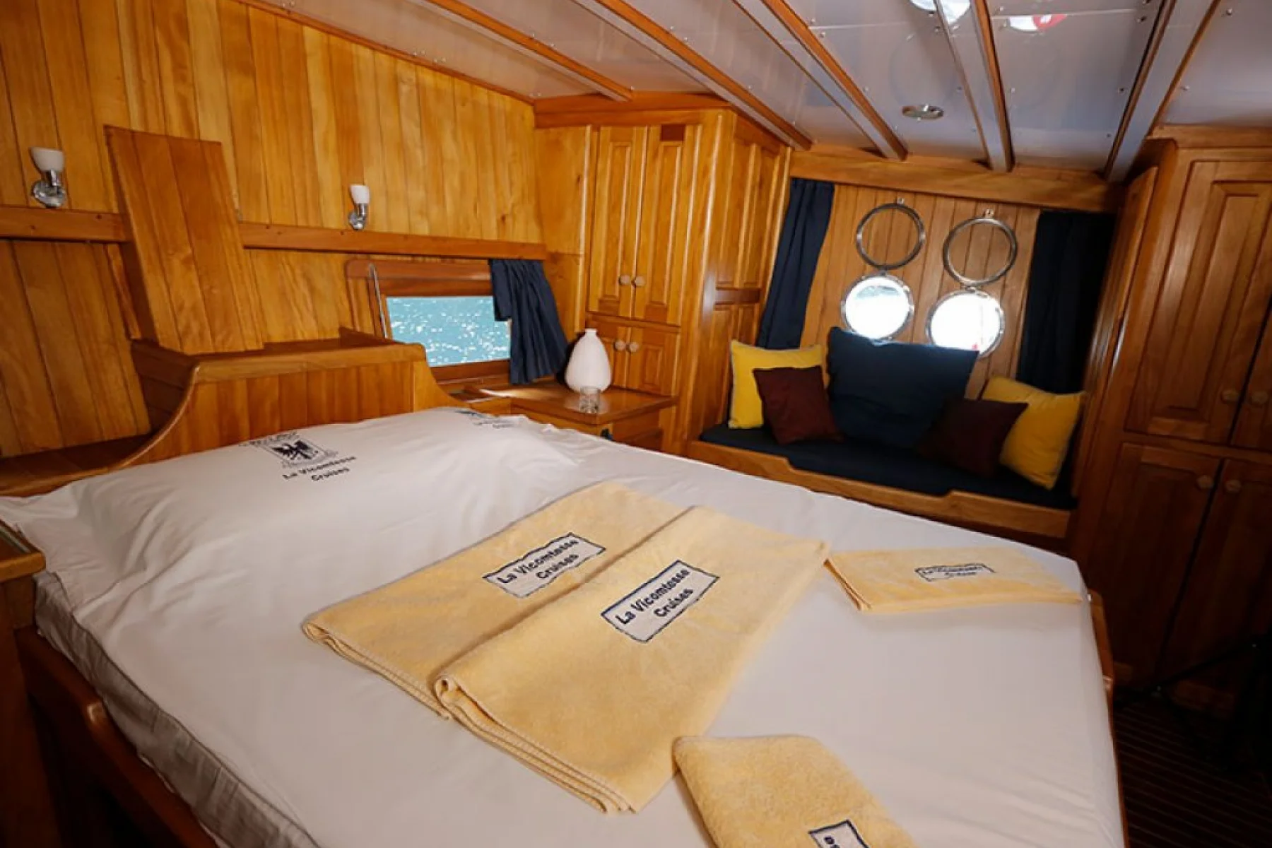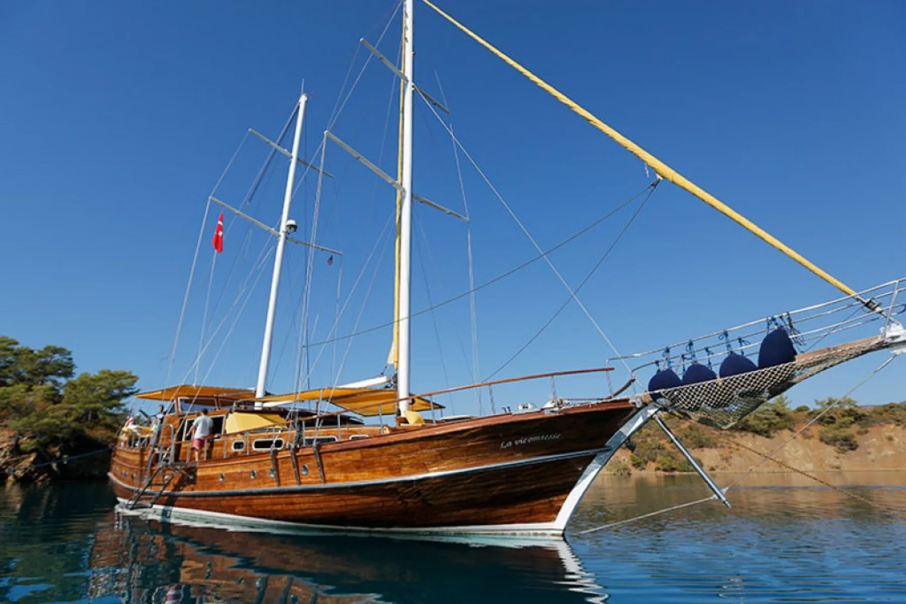 La Vicomtesse isimli 25 metre uzunluğundaki 6 kamaralı ahşap yatımız, 12 kişiye kadar misafir ağırlayabilmekte ve profesyonel personeli ile Akdeniz ve Ege denizinin eşsiz koylarında mavi yolculuk tatilleri için tercih edilen bir yatımızdır.