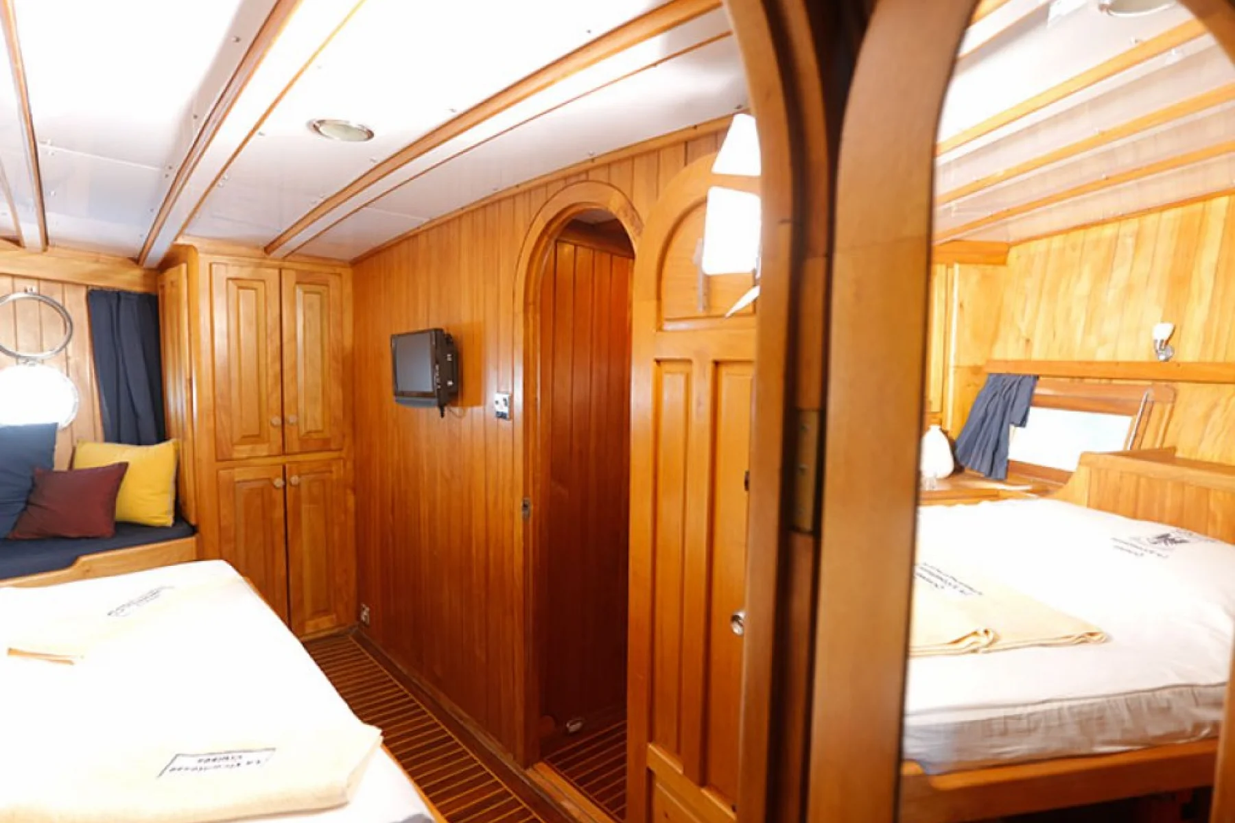 Yatımızın bütün kabinlerinde wc, duşa kabin, elbise dolabı, saç kurutma makinesi bulunmaktadır.