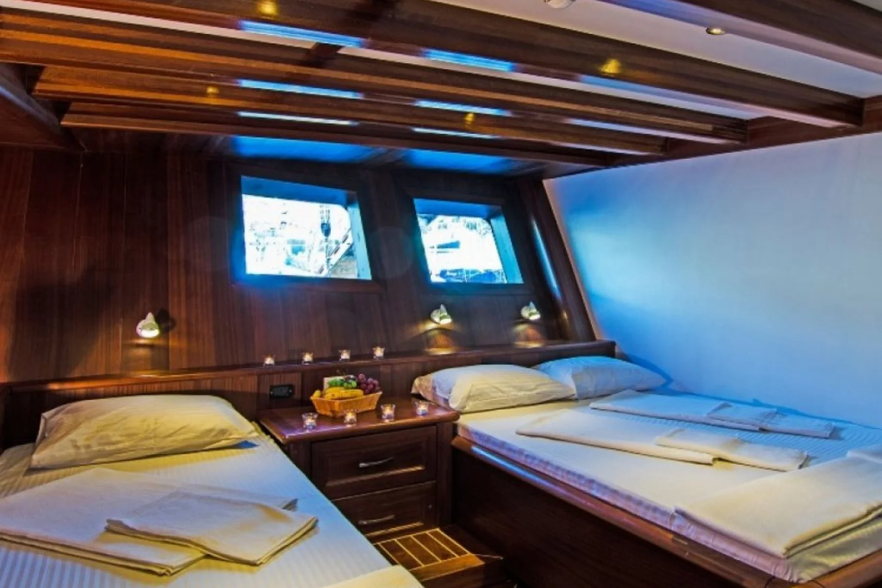 Yatımızın bütün kabinlerinde wc, duşa kabin, elbise dolabı, saç kurutma makinesi bulunmaktadır.