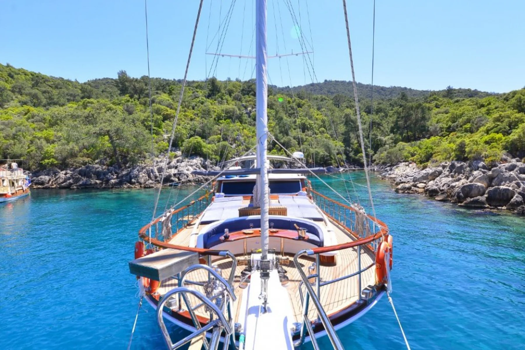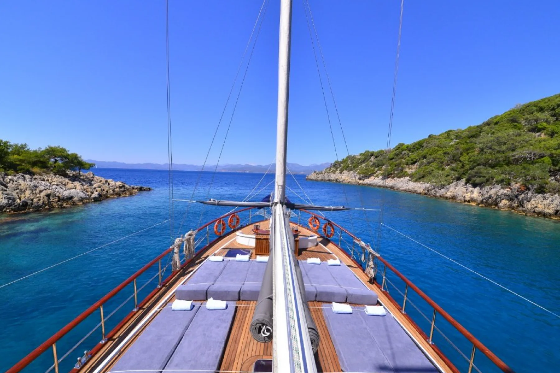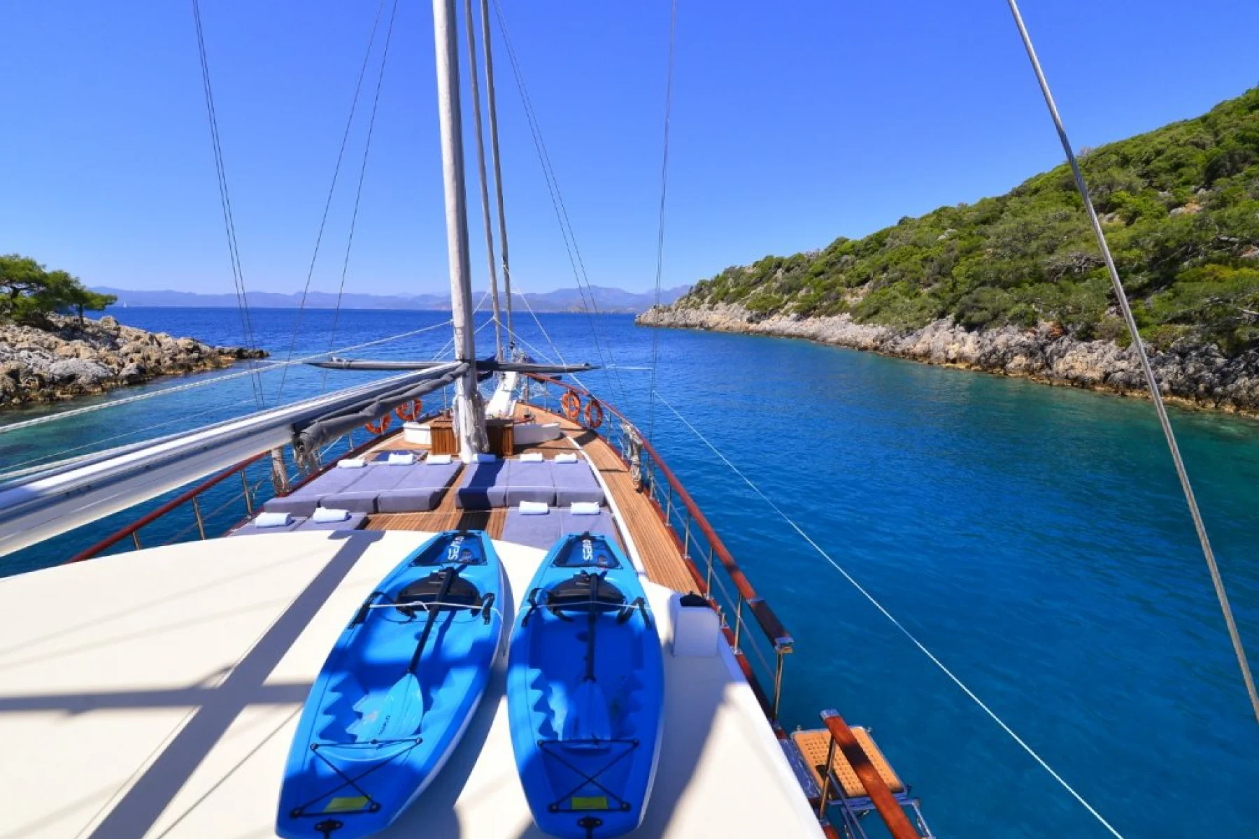 Teknemizdeki seyir cihazları ile; telsiz, radar, gps, ais transponder, can simidi, can yeleği, can salı, ve zodiak şişme bot ile kendinizi Akdeniz ve Egenin muhteşem mavi sularında, Bodrum, Gökova, Bozburun, Marmaris, Fethiye, Göcek 12 adalar, Ölüdeniz, Kelebekler vadisi, Kalkan, Kaş, Kekova, Olimpos, Antalya bölgelerindeki tarihi koylarında güvende hissedeceksiniz.