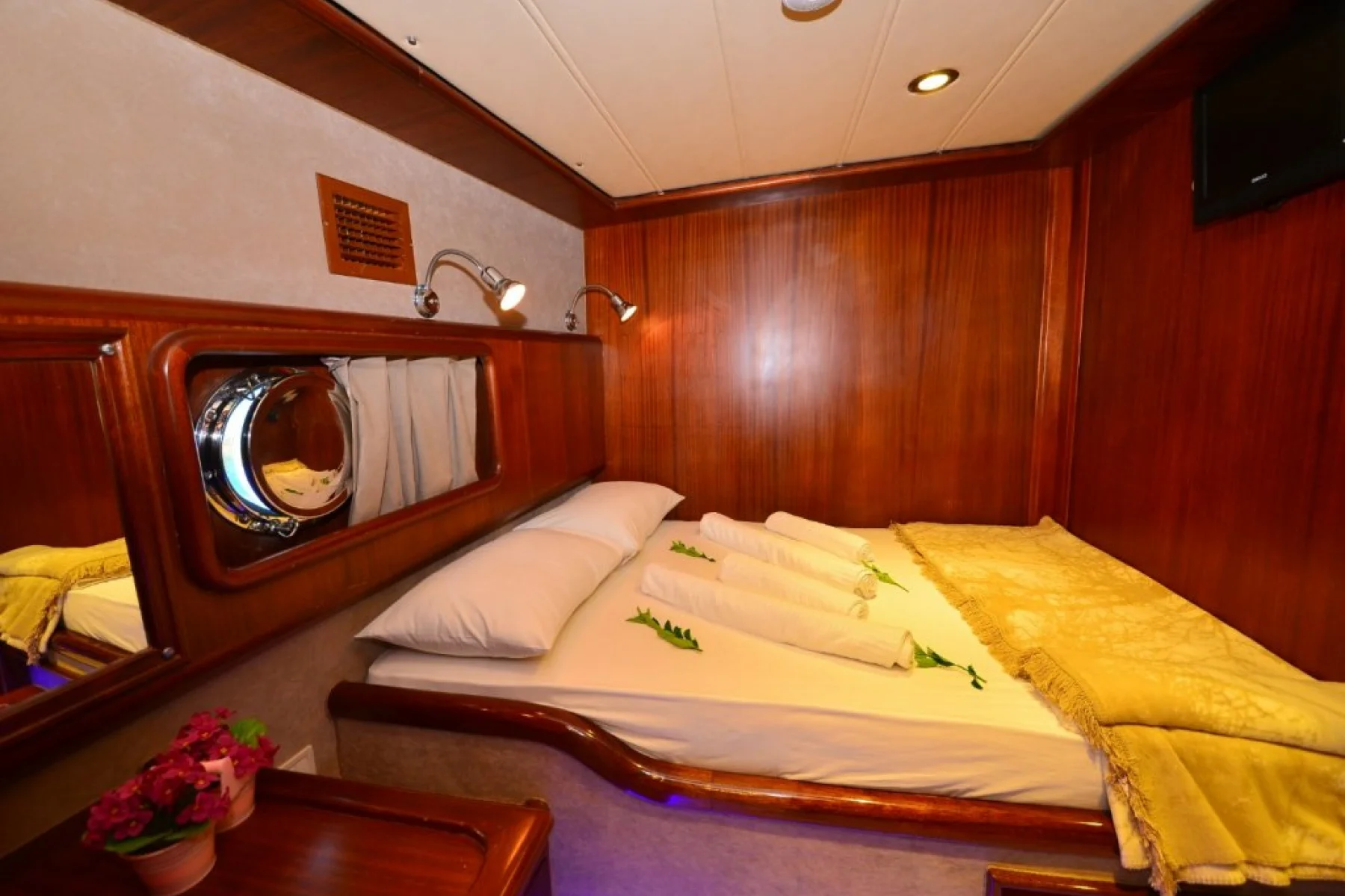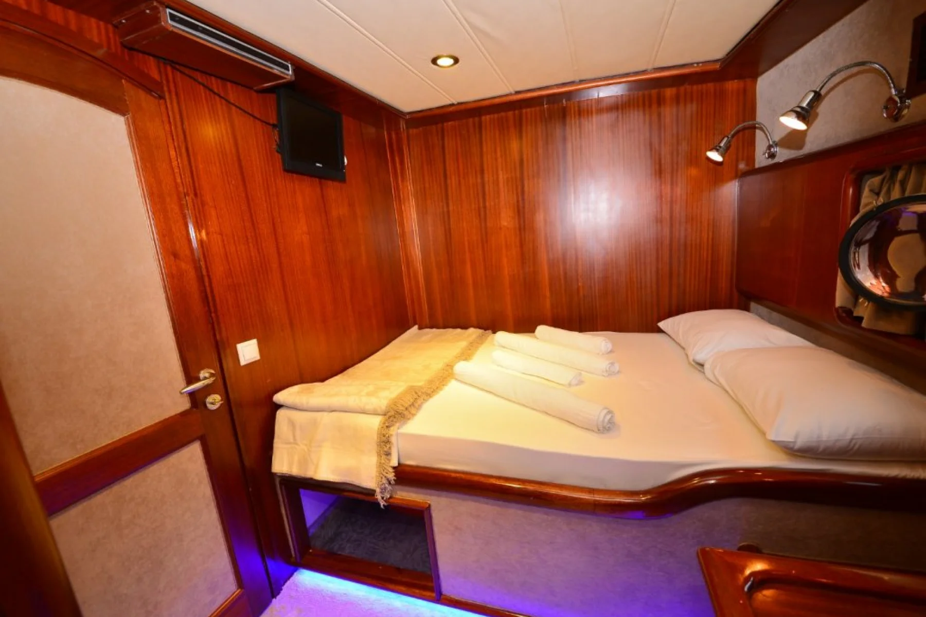 Yatımızın bütün kabinlerinde wc, duşa kabin, elbise dolabı, saç kurutma makinesi bulunmaktadır.