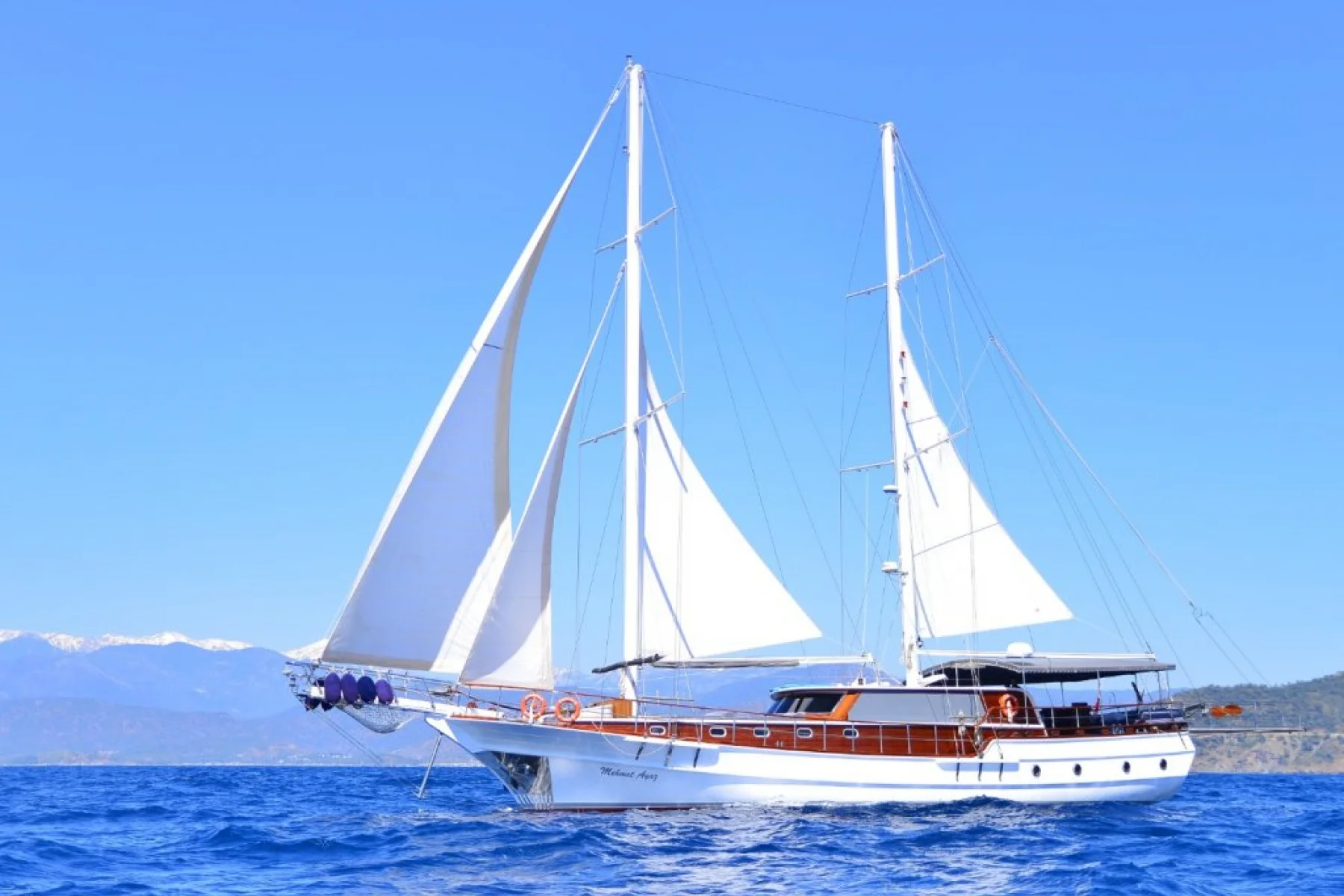 Mehmet Ayaz isimli 24.4 metre uzunluğundaki 5 kamaralı ahşap yatımız, 10 kişiye kadar misafir ağırlayabilmekte ve profesyonel personeli ile Akdeniz ve Ege denizinin eşsiz koylarında mavi yolculuk tatilleri için tercih edilen bir yatımızdır.