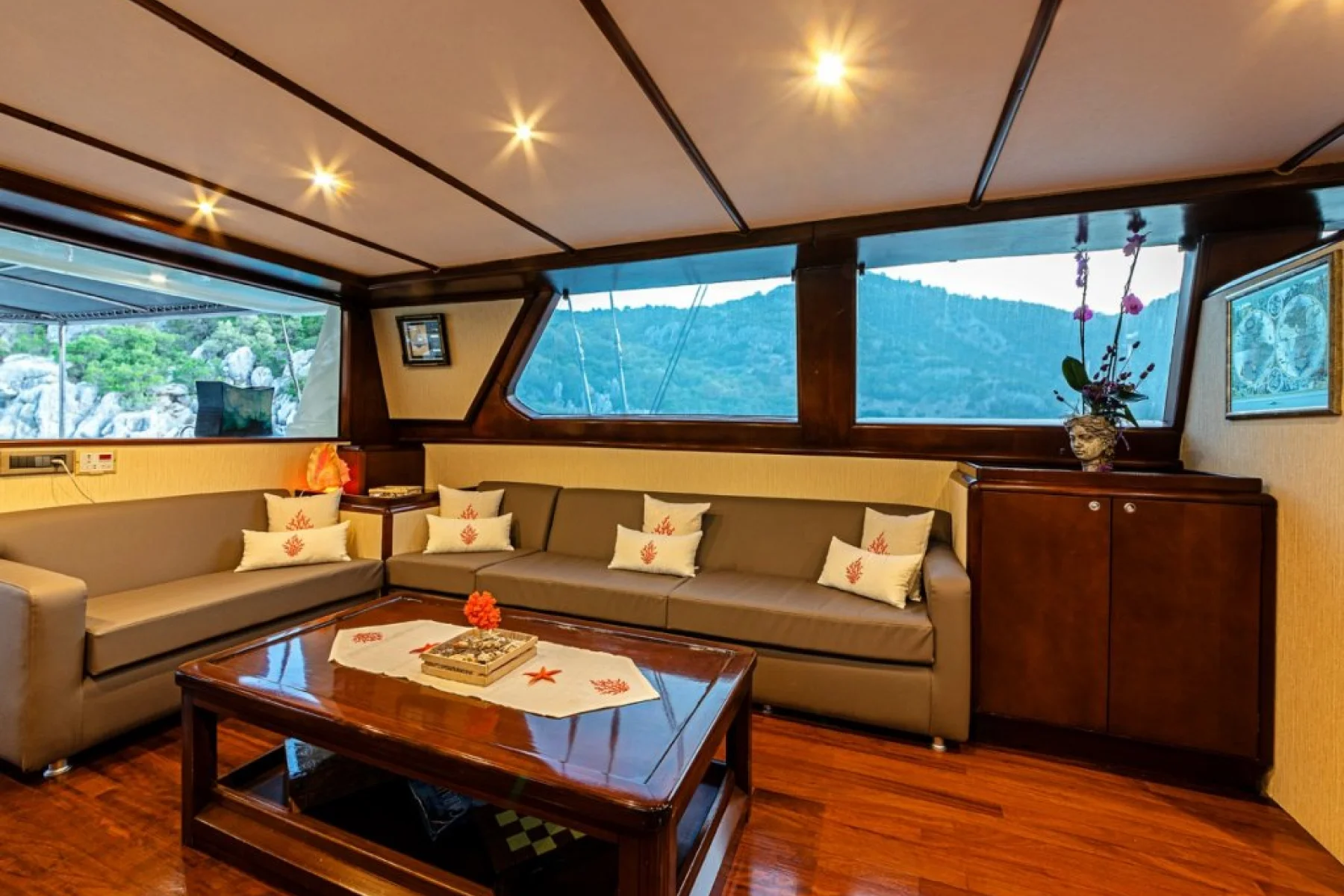 - Standart yat ekipmanları, masa oyunları, şnorkel, gözlük, Palet, Olta takımları.