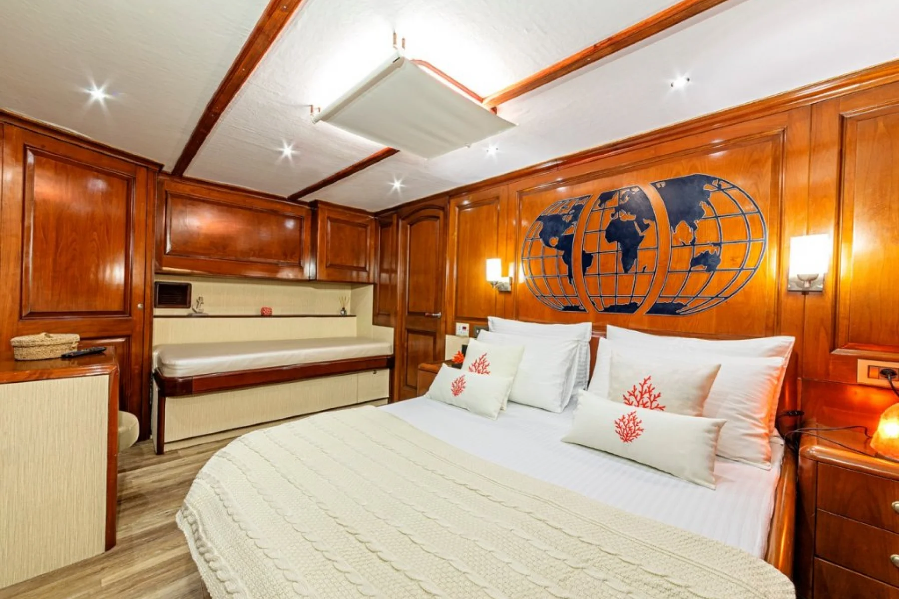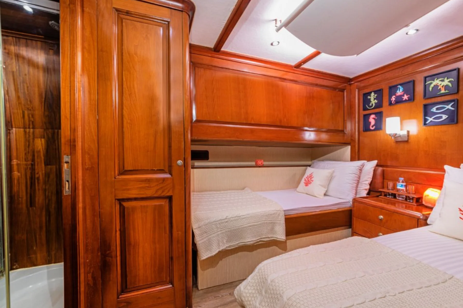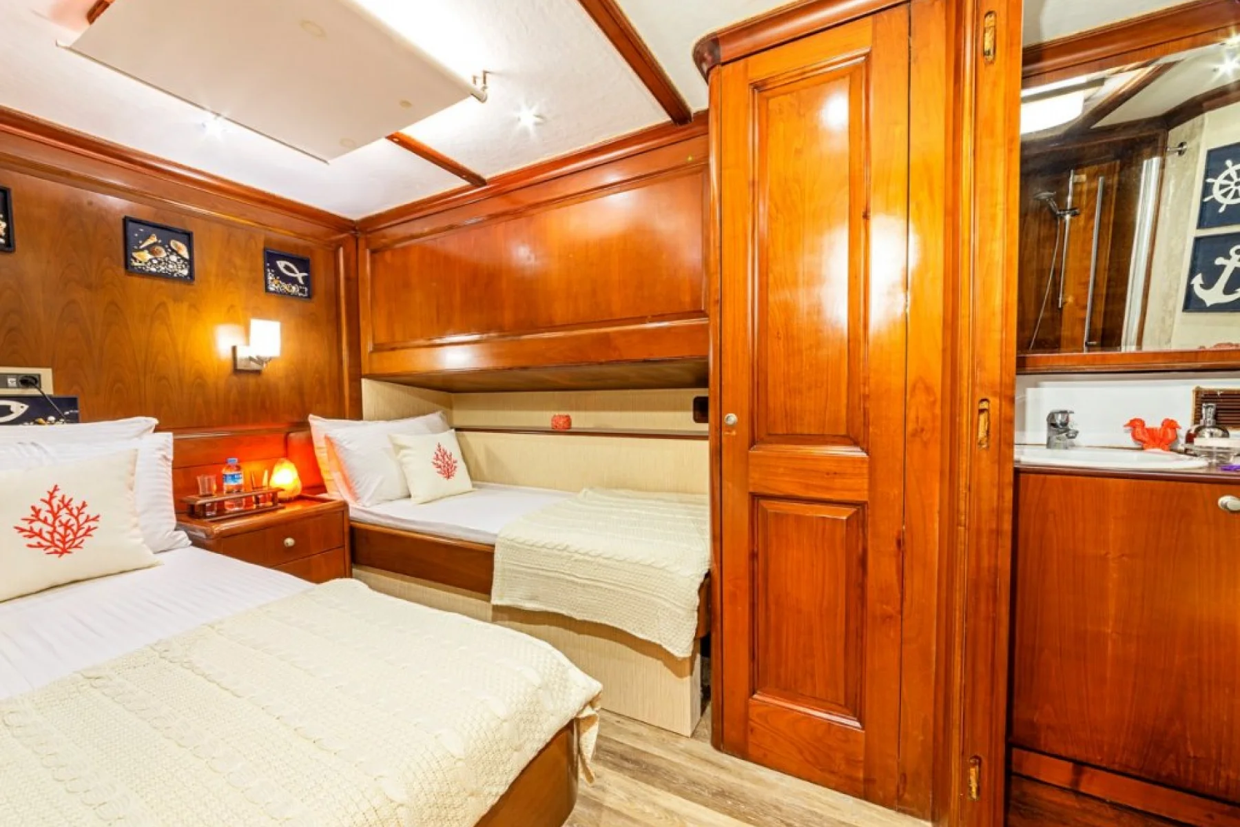 Yatımızın bütün kabinlerinde wc, duşa kabin, elbise dolabı, saç kurutma makinesi bulunmaktadır.