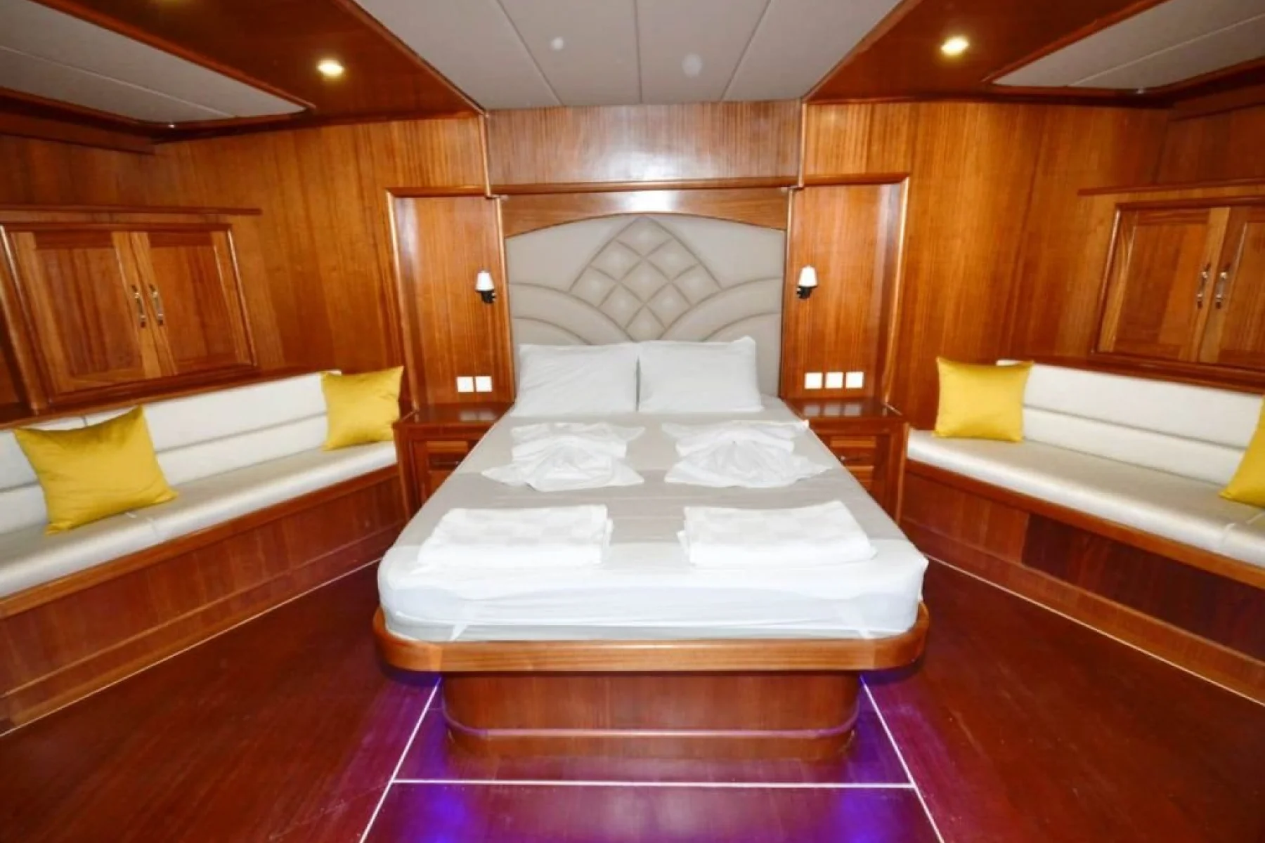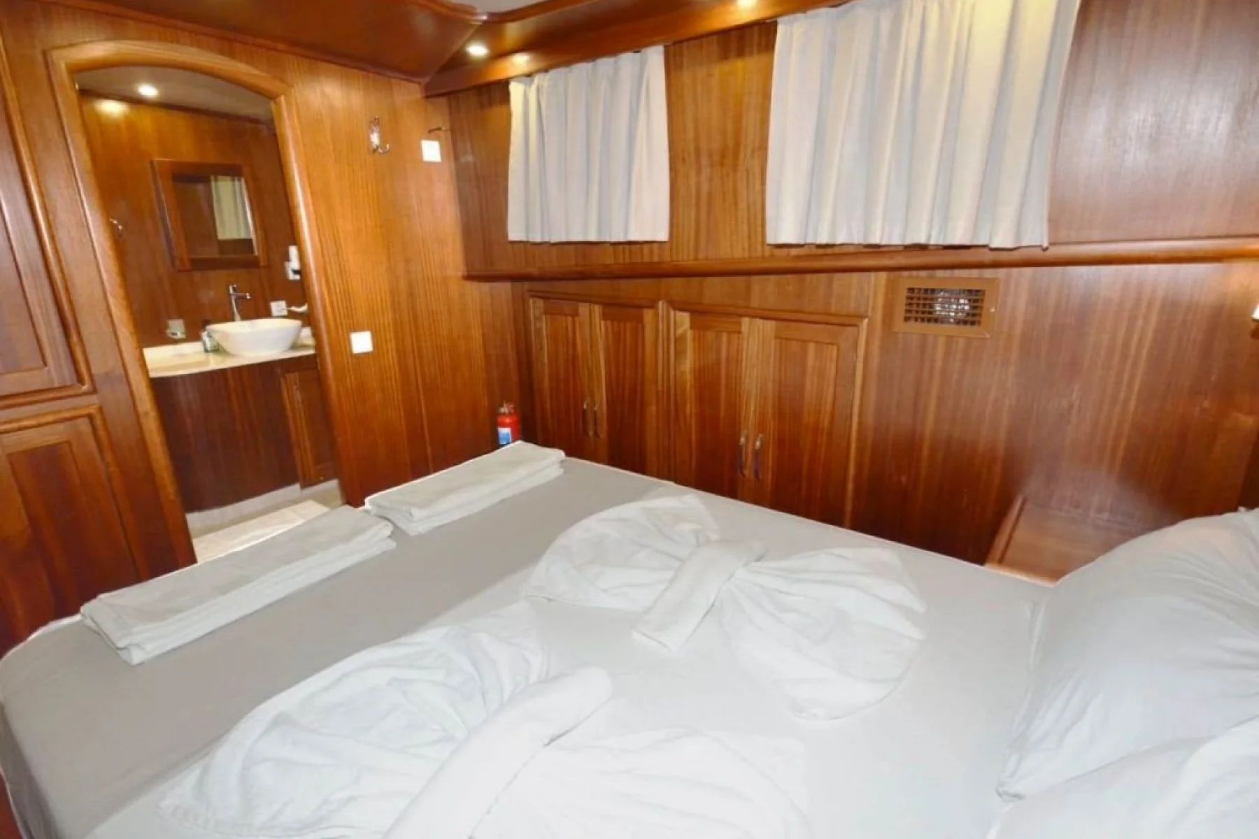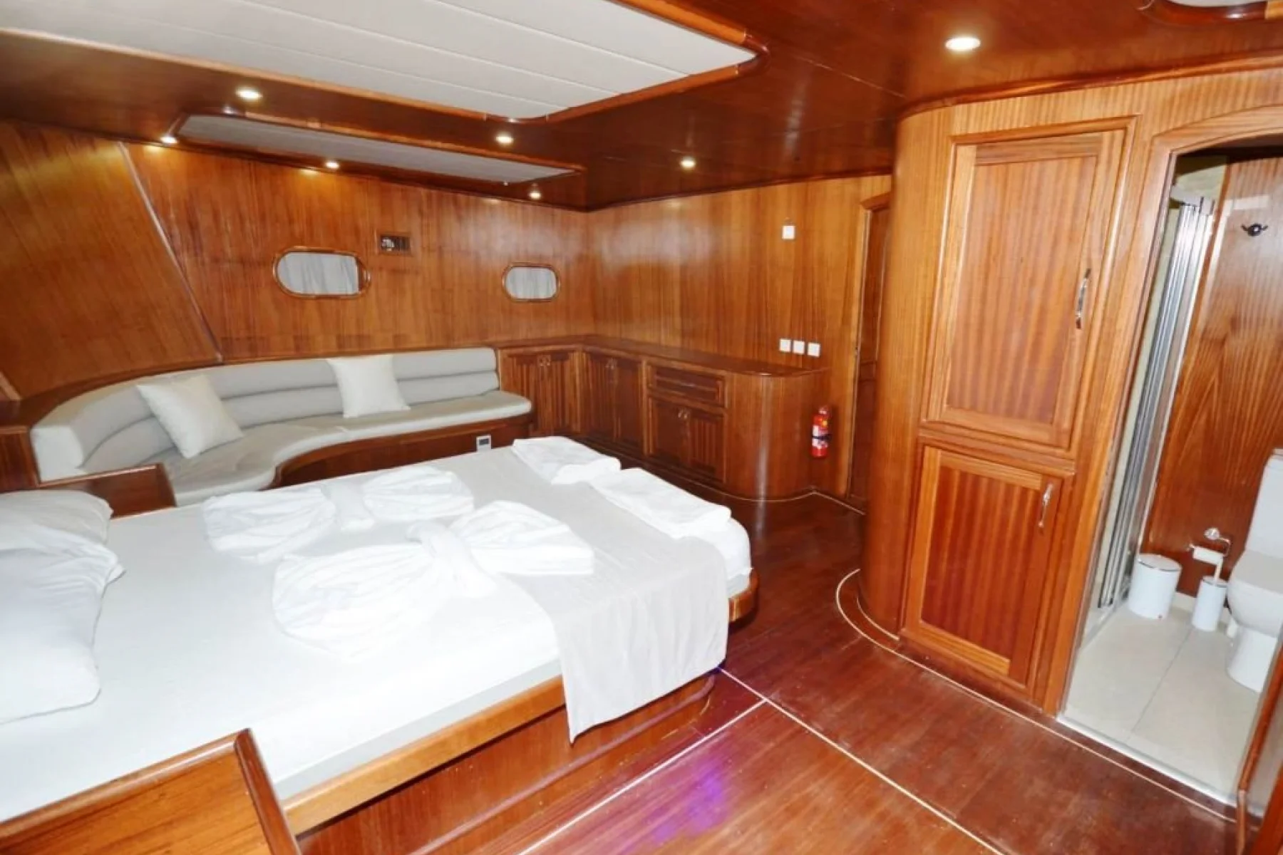 Yatımızın bütün kabinlerinde wc, duşa kabin, elbise dolabı, saç kurutma makinesi bulunmaktadır.