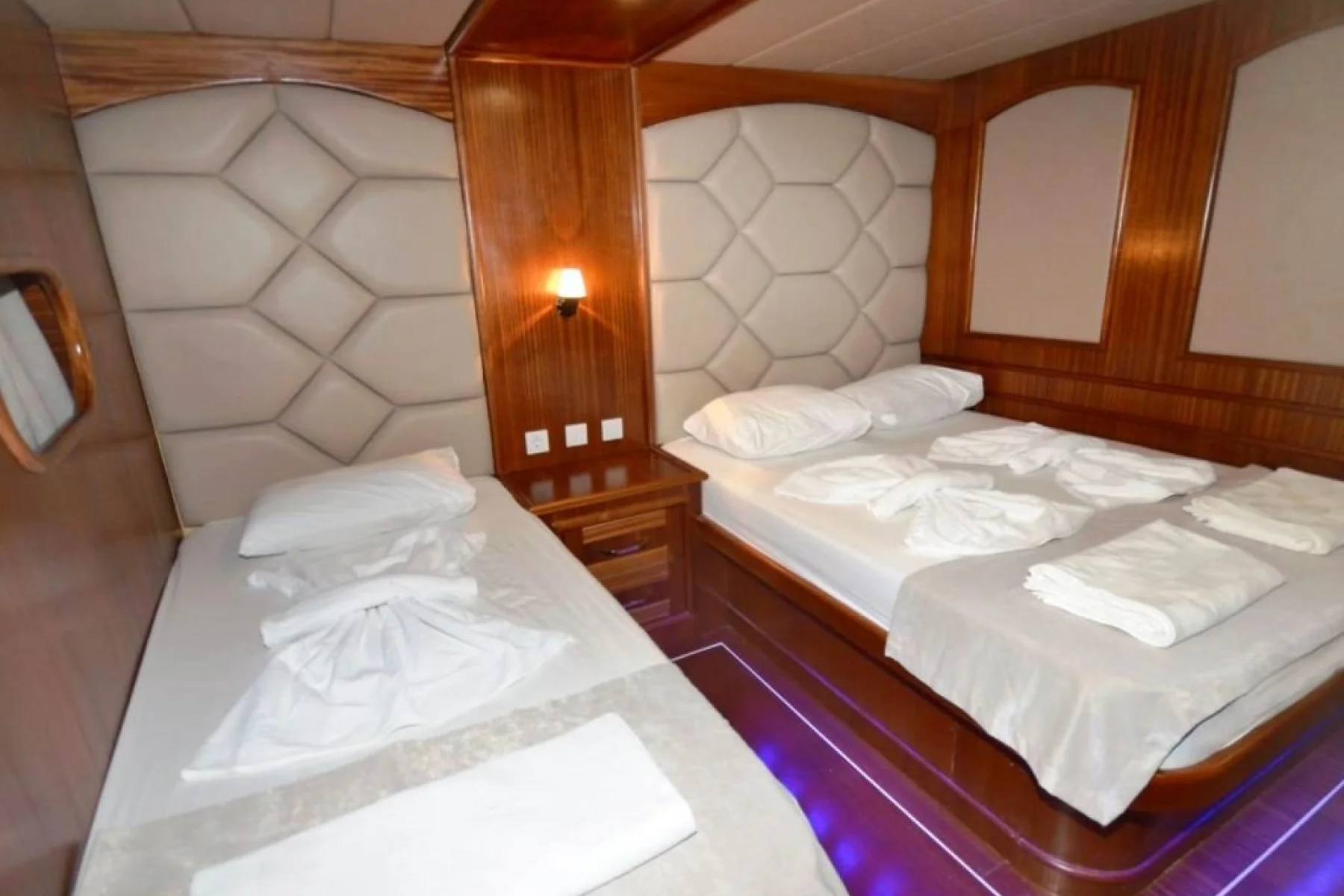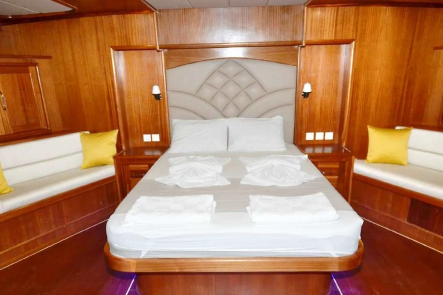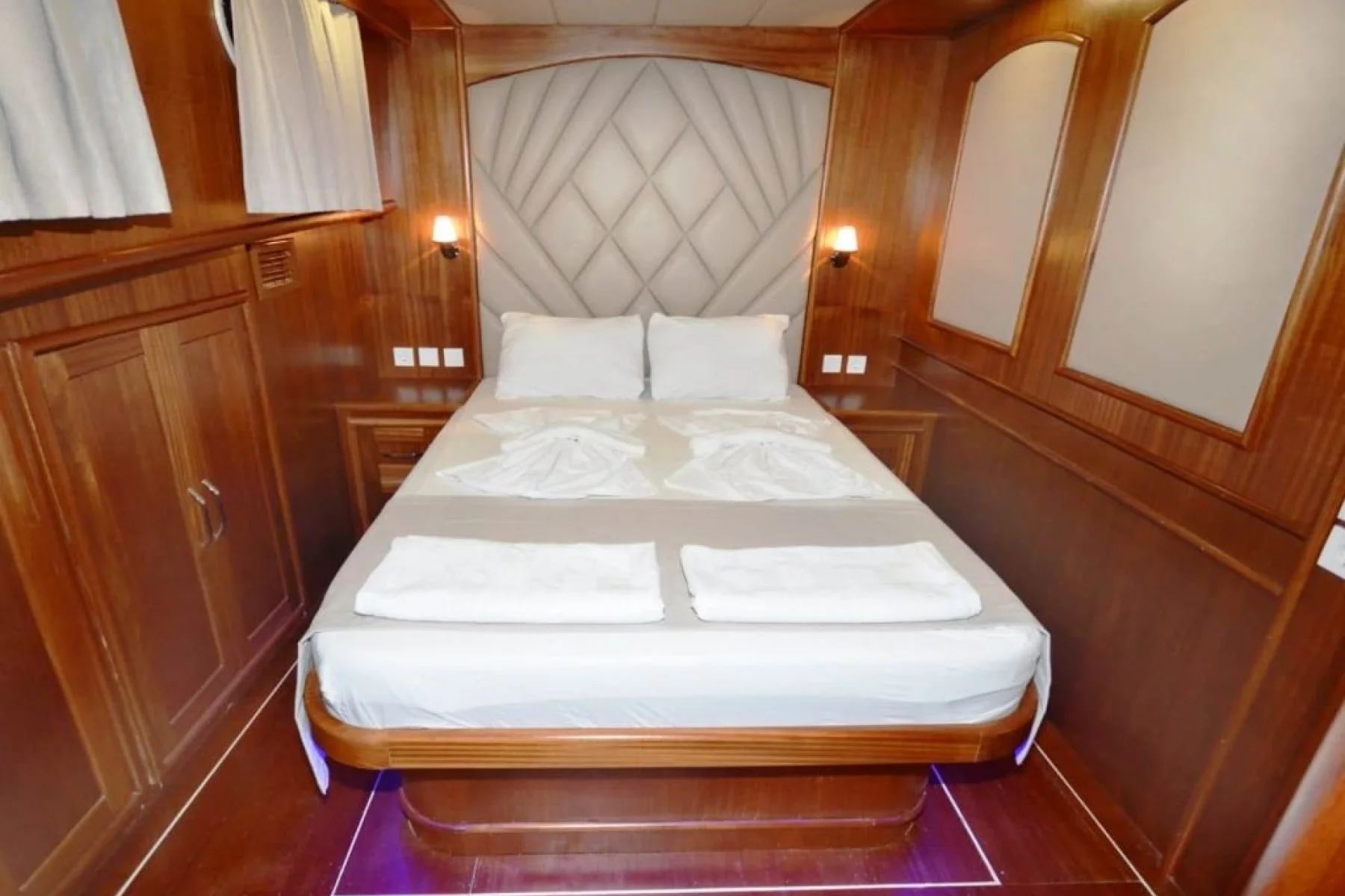 Yatımızın bütün kabinlerinde wc, duşa kabin, elbise dolabı, saç kurutma makinesi bulunmaktadır.