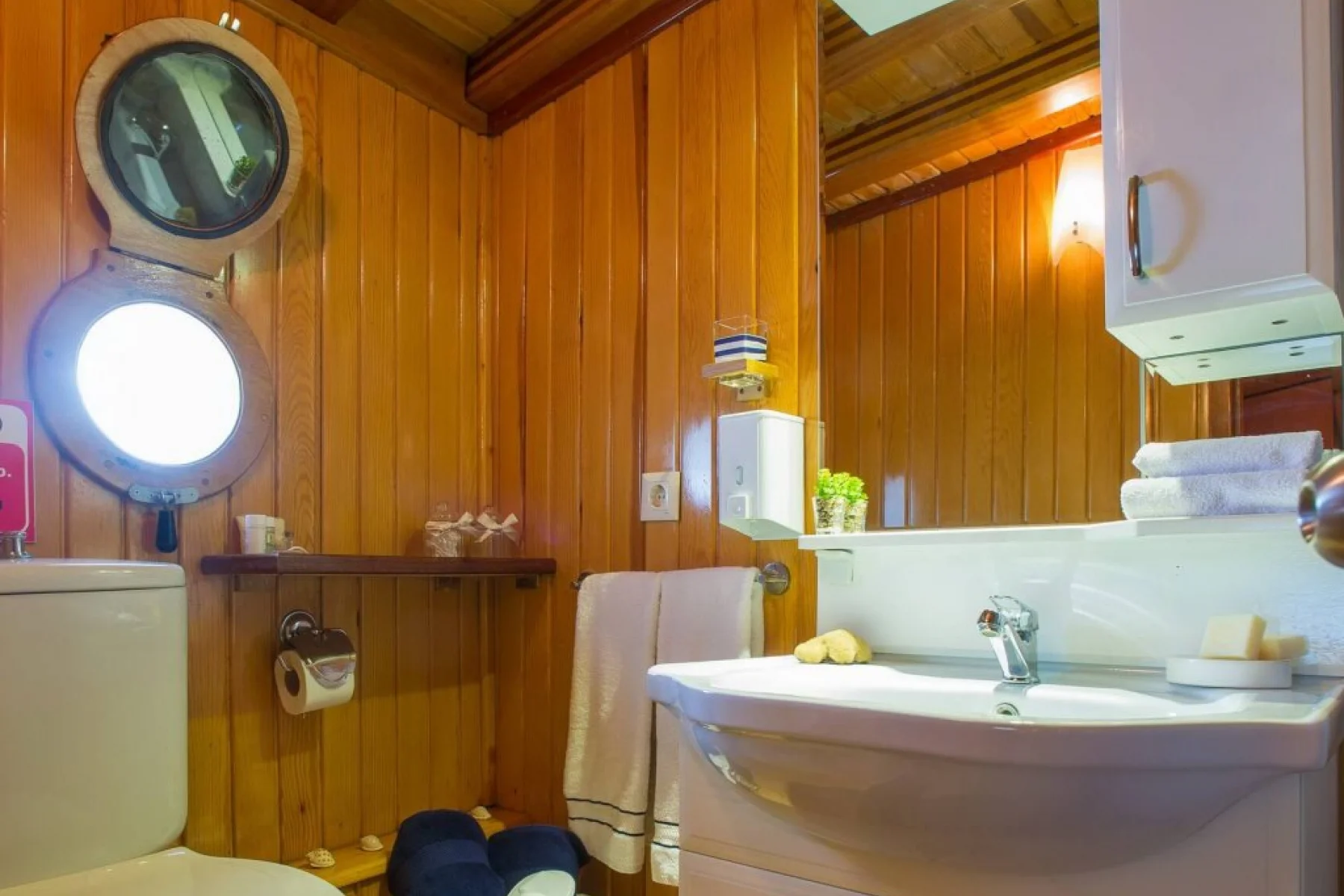 Yatımızın bütün kabinlerinde wc, duşa kabin, elbise dolabı, saç kurutma makinesi bulunmaktadır.
