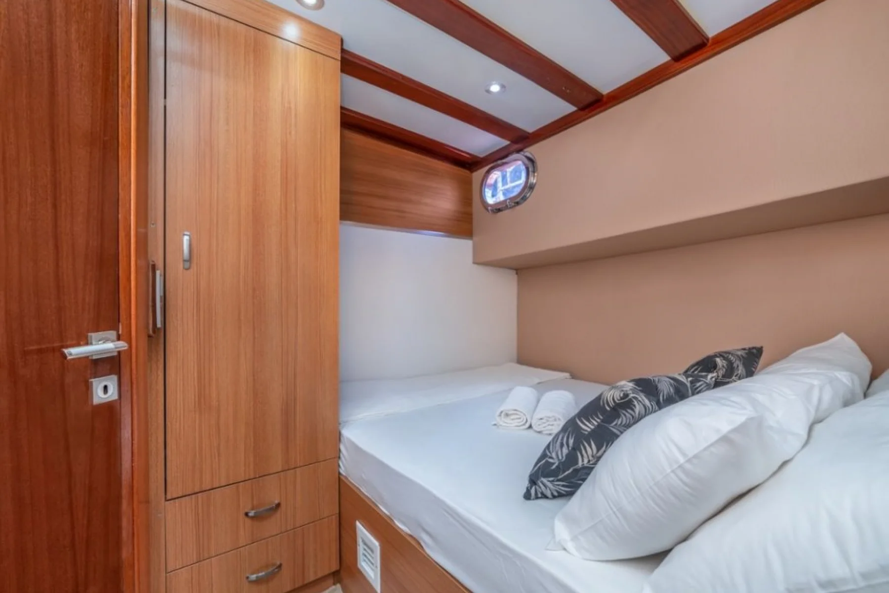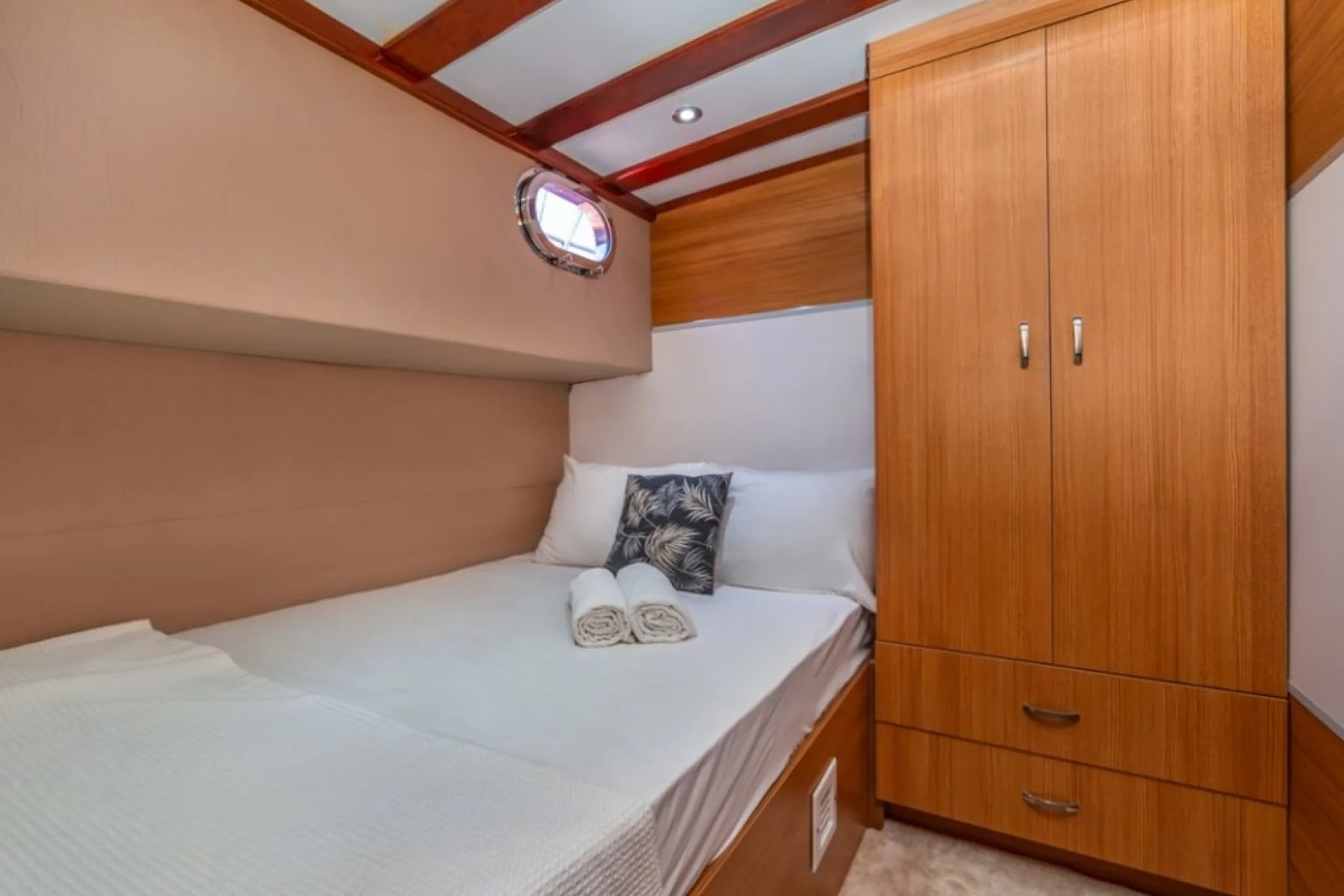 Yatımızın bütün kabinlerinde wc, duşa kabin, elbise dolabı, saç kurutma makinesi bulunmaktadır.